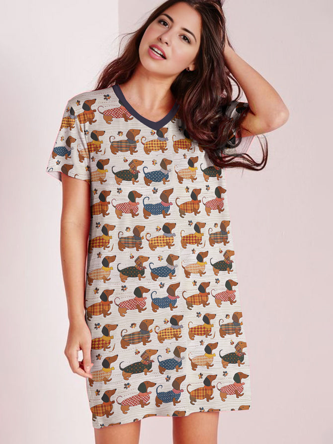 Made from ultra-soft Jersey Knit Fabric (95% polyester, 5% spandex), it's lightweight, breathable, and perfect for lounging. Featuring unique printed graphics, this nightshirt adds a touch of personal style to your cozy moments at home.