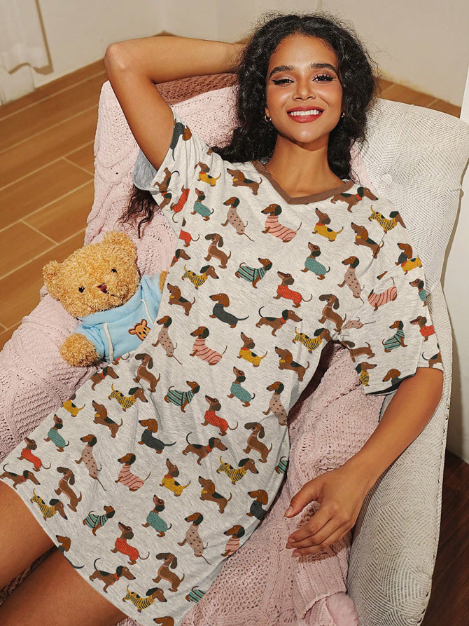 Dachshund V-neck Nightshirt Trendy Pup