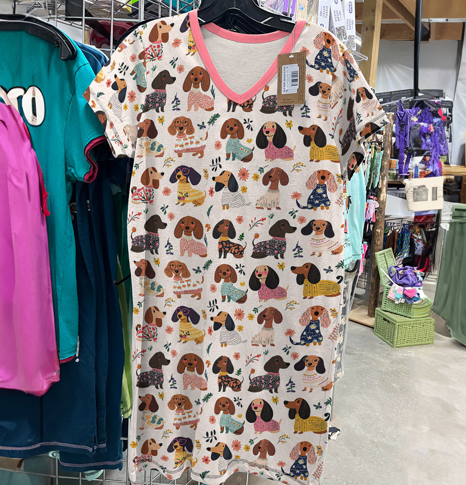 Dachshund V-neck Nightshirt Wagging In Bloom