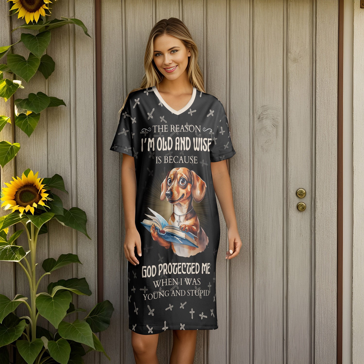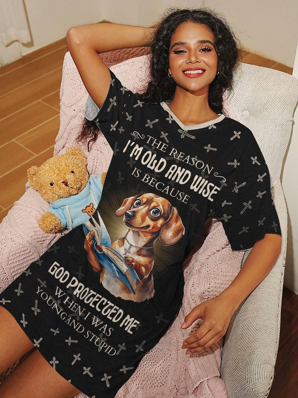 Made from ultra-soft Jersey Knit Fabric (95% polyester, 5% spandex), it's lightweight, breathable, and perfect for lounging. Featuring unique printed graphics, this nightshirt adds a touch of personal style to your cozy moments at home.