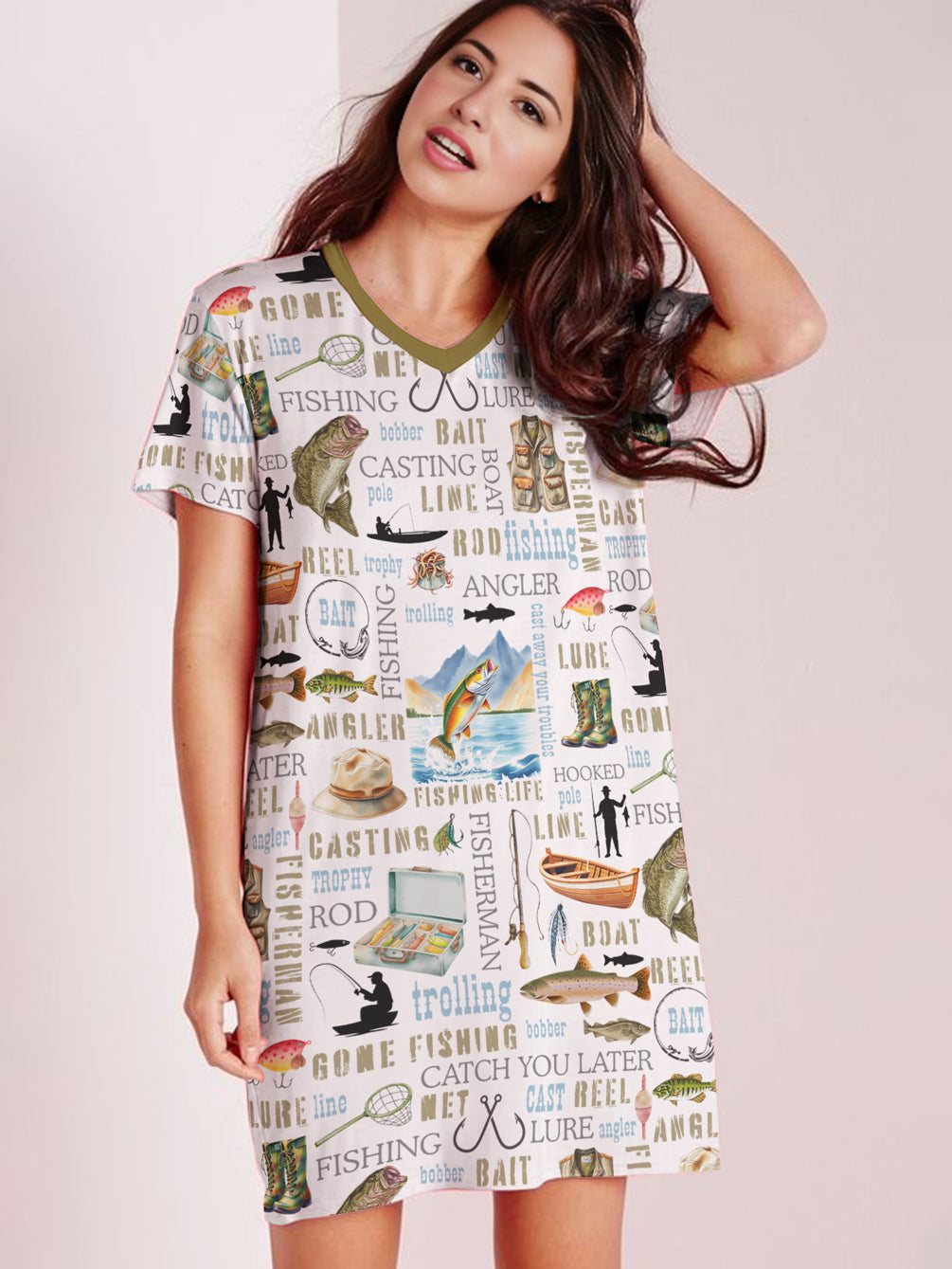 Fishing V-neck Nightshirt Fishing Life