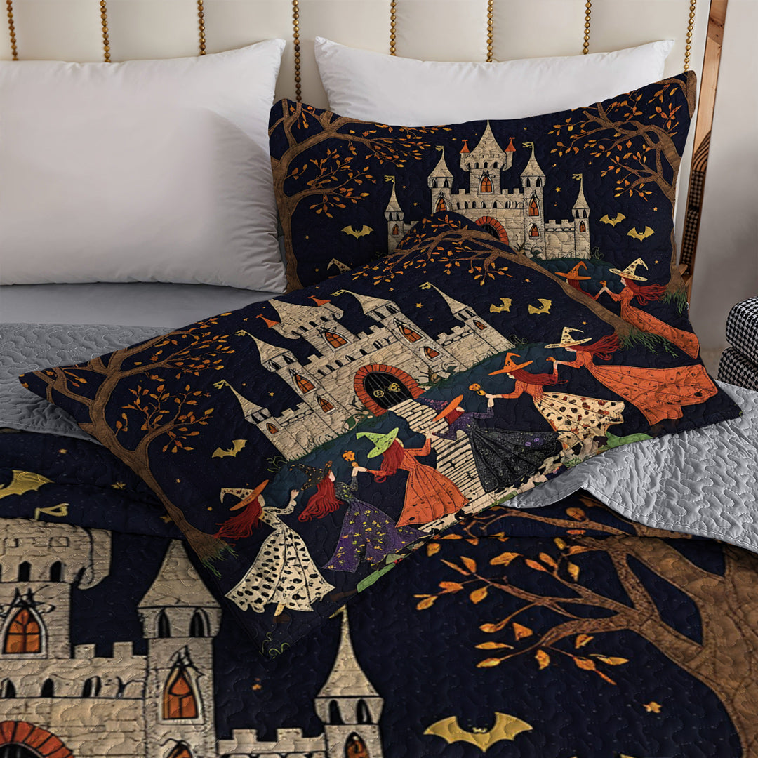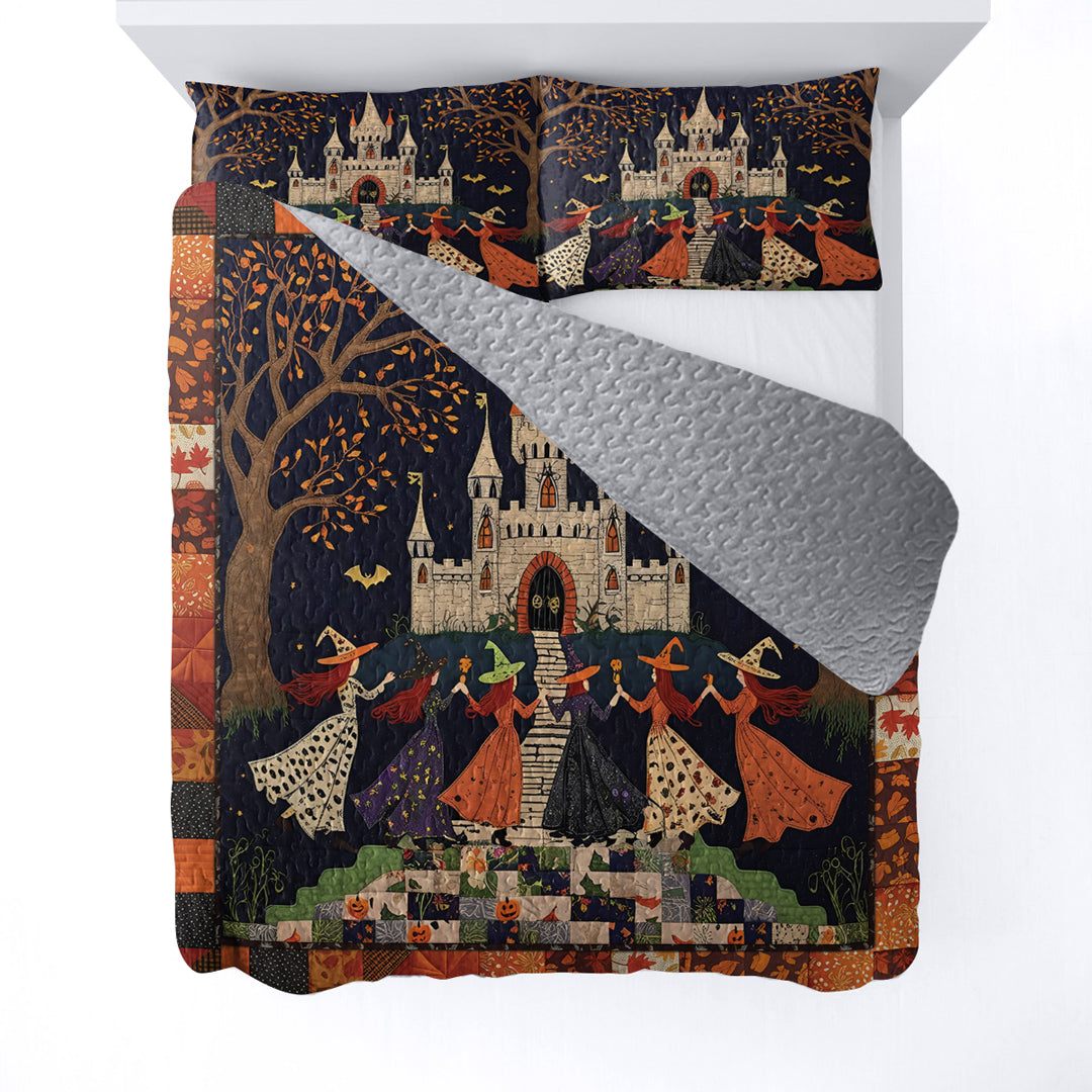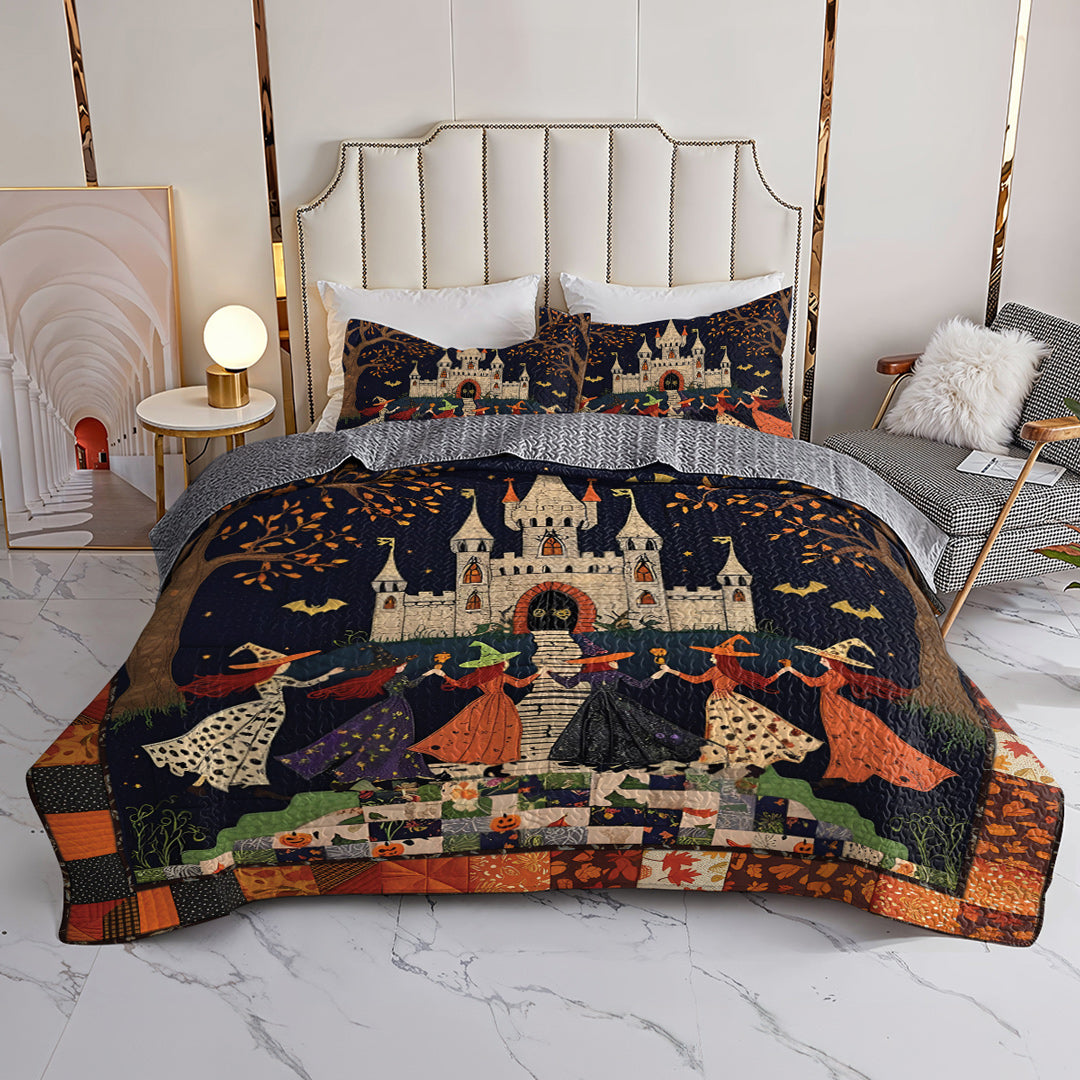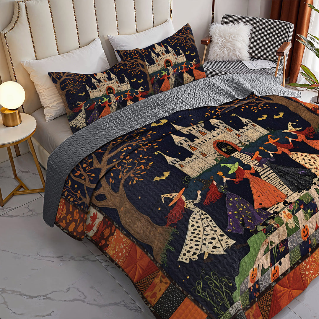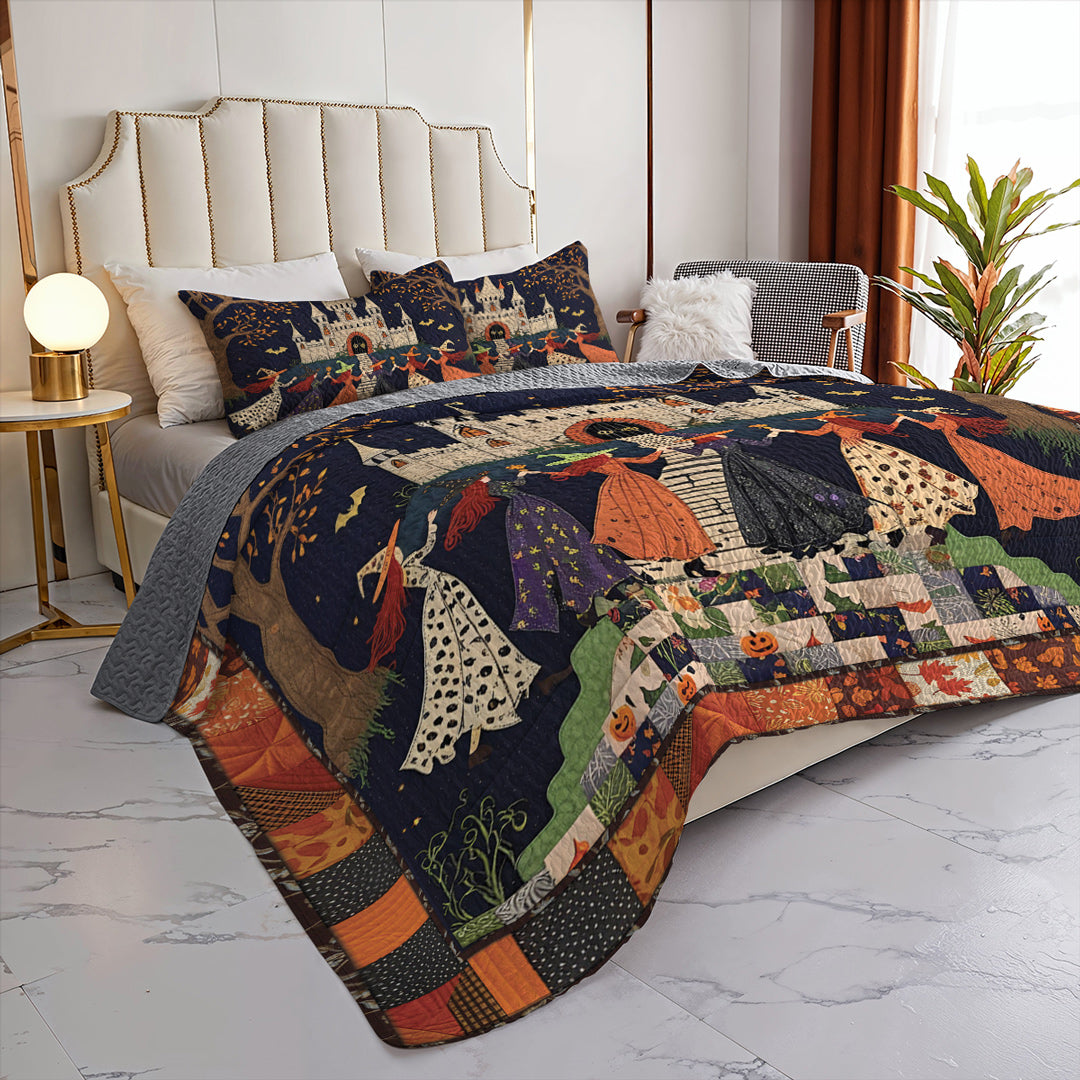 Halloween Witch 2D Print All Season 3-Piece Quilt Set Haunted Harmony