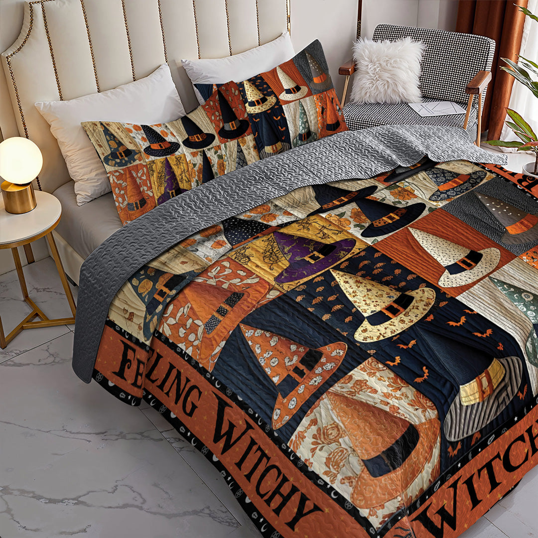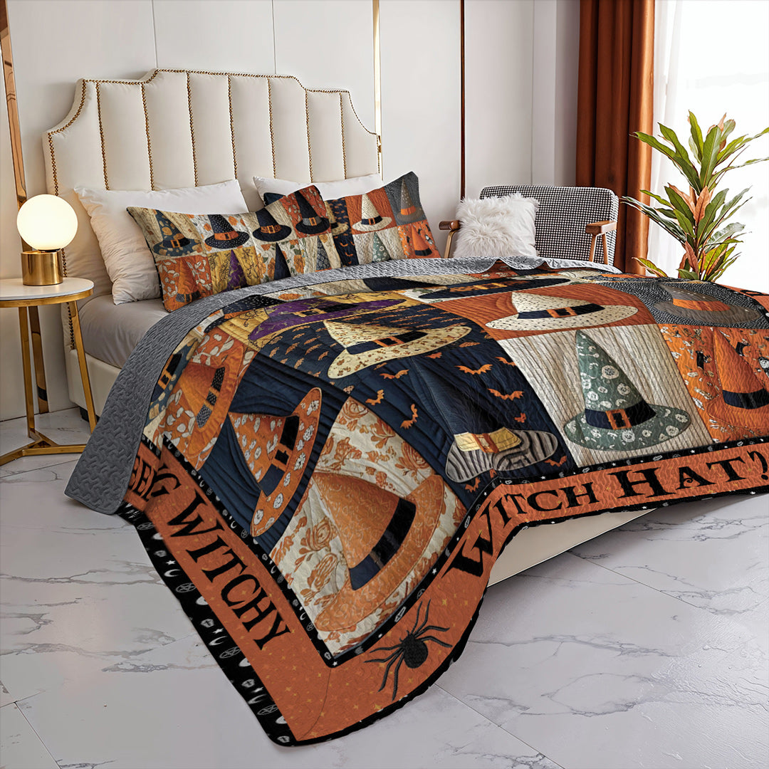Halloween Witch 2D Print All Season 3-Piece Quilt Set If The Hat Fits