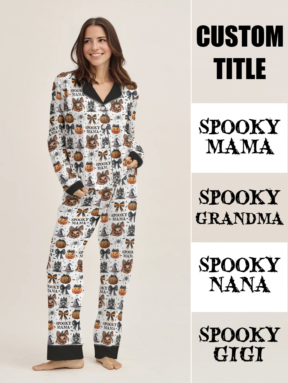 Halloween Classic Pajama Set Custom Title Spooky Mama Grandma