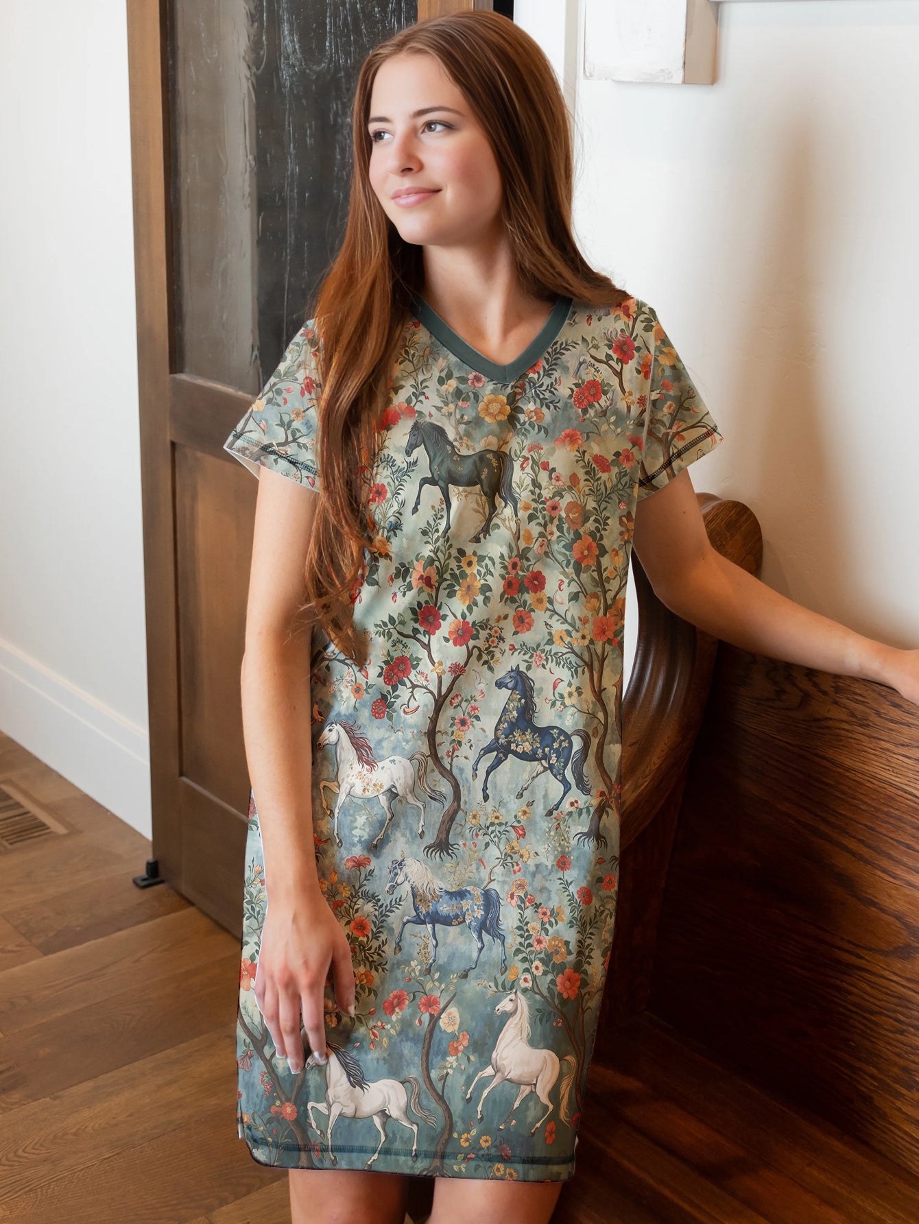 Made from ultra-soft Jersey Knit Fabric (95% polyester, 5% spandex), it's lightweight, breathable, and perfect for lounging. Featuring unique printed graphics, this nightshirt adds a touch of personal style to your cozy moments at home.