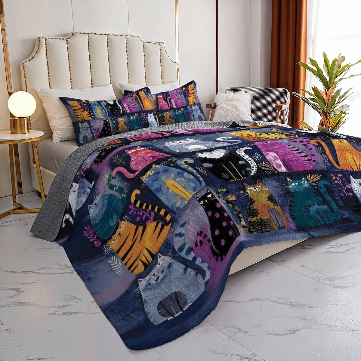All Season Quilt 3-Piece Set Nocturne Of Cats
