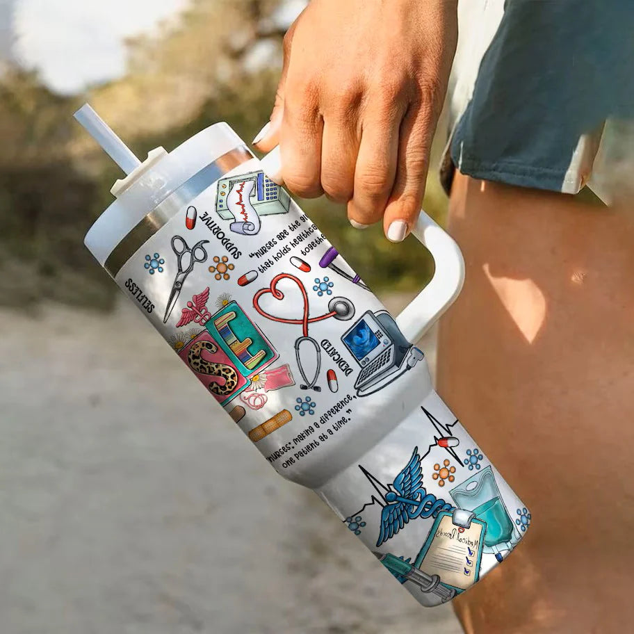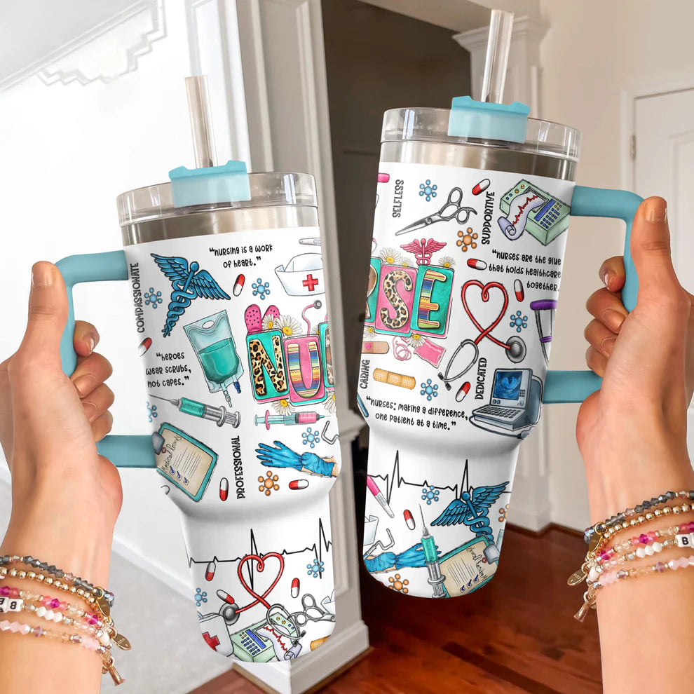 Nurse 40Oz Tumbler Nursing Is A Work Of Heart