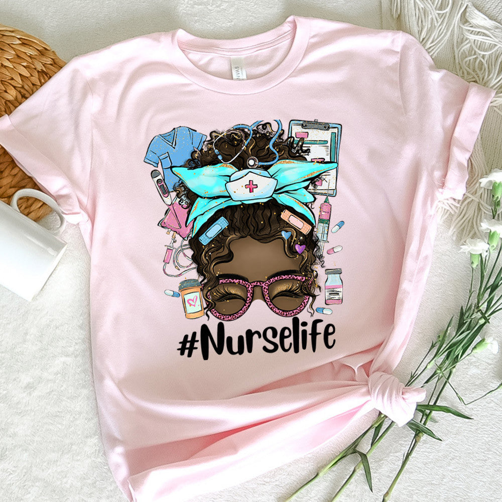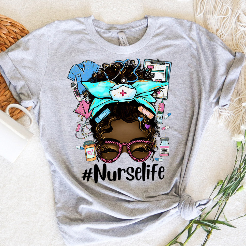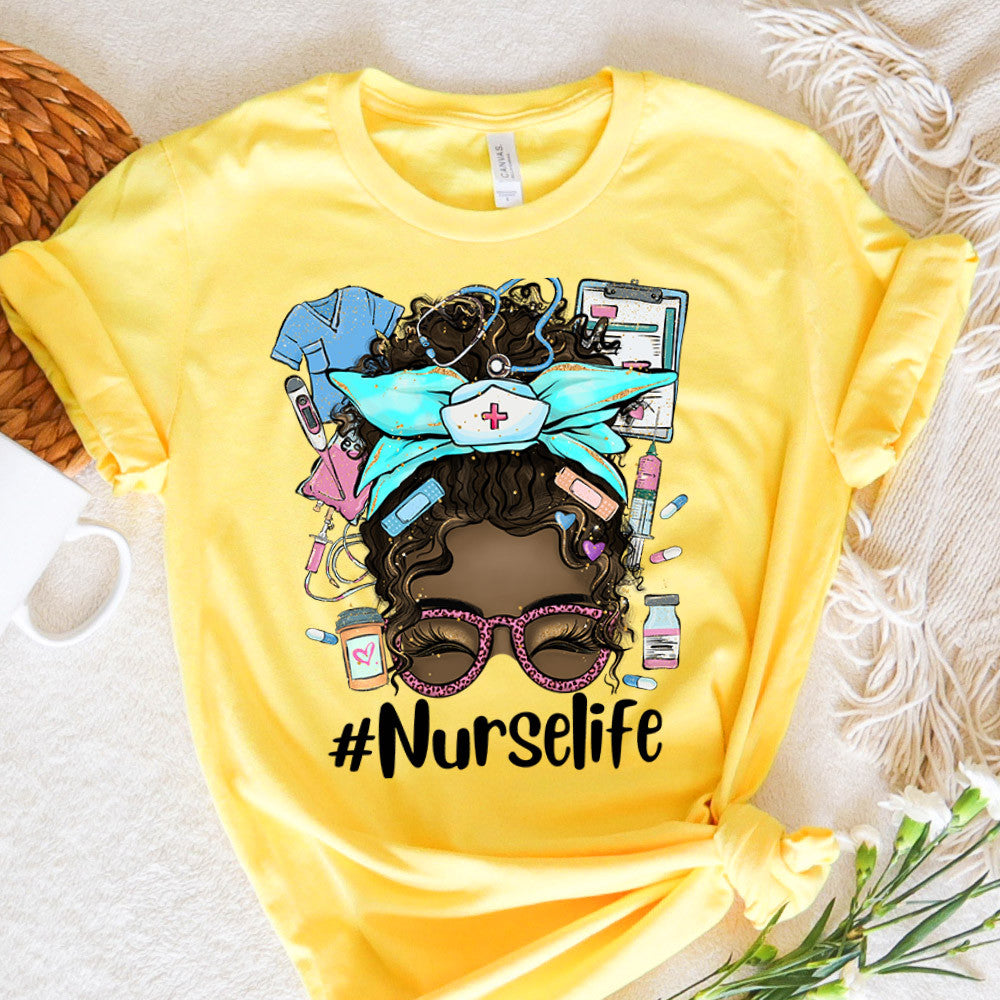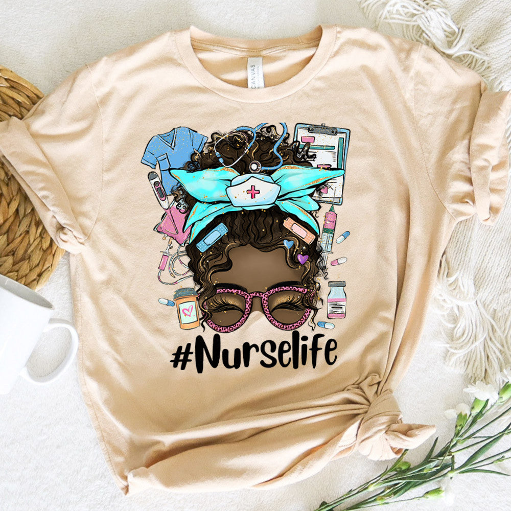 Nurse Graphic Tee Nurse Life Messy Bun Hair Black Girl