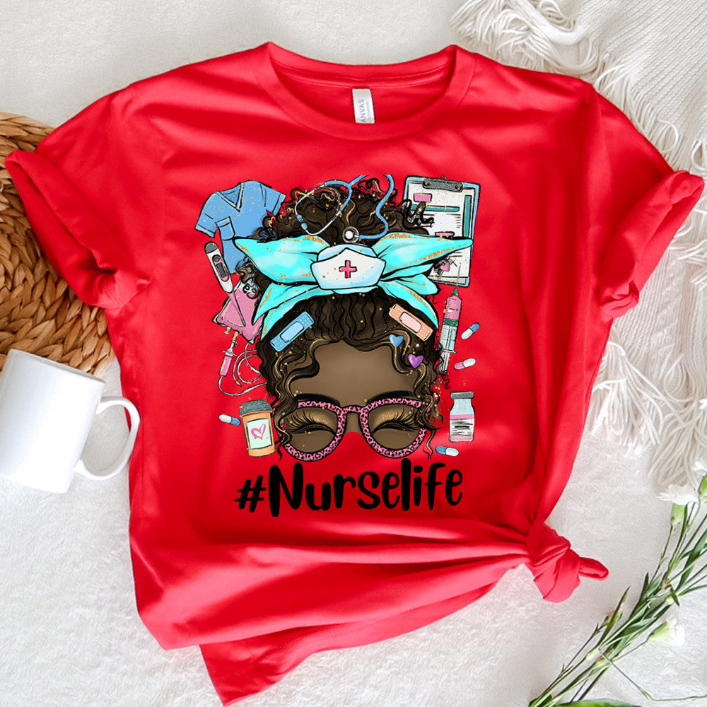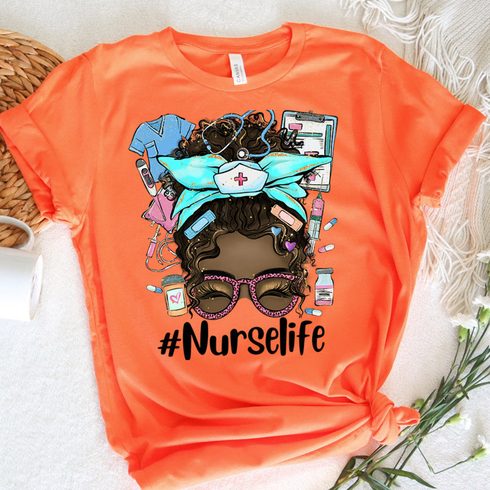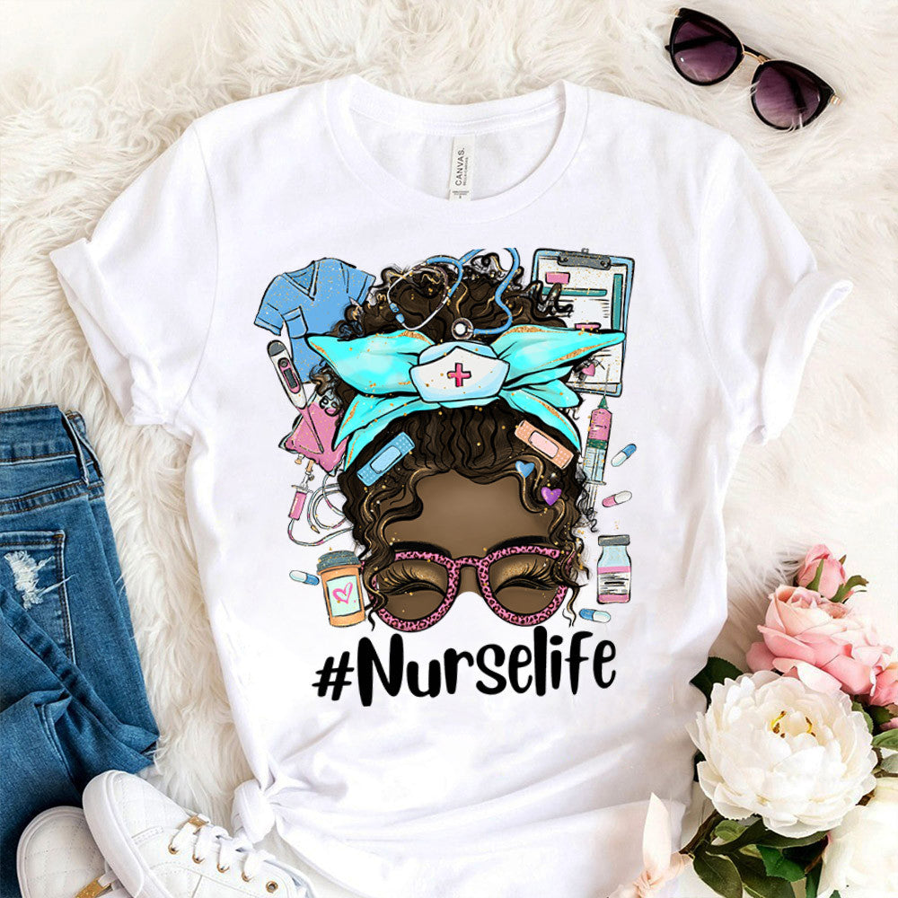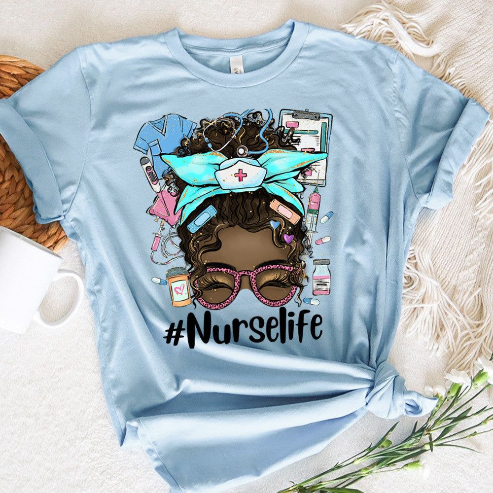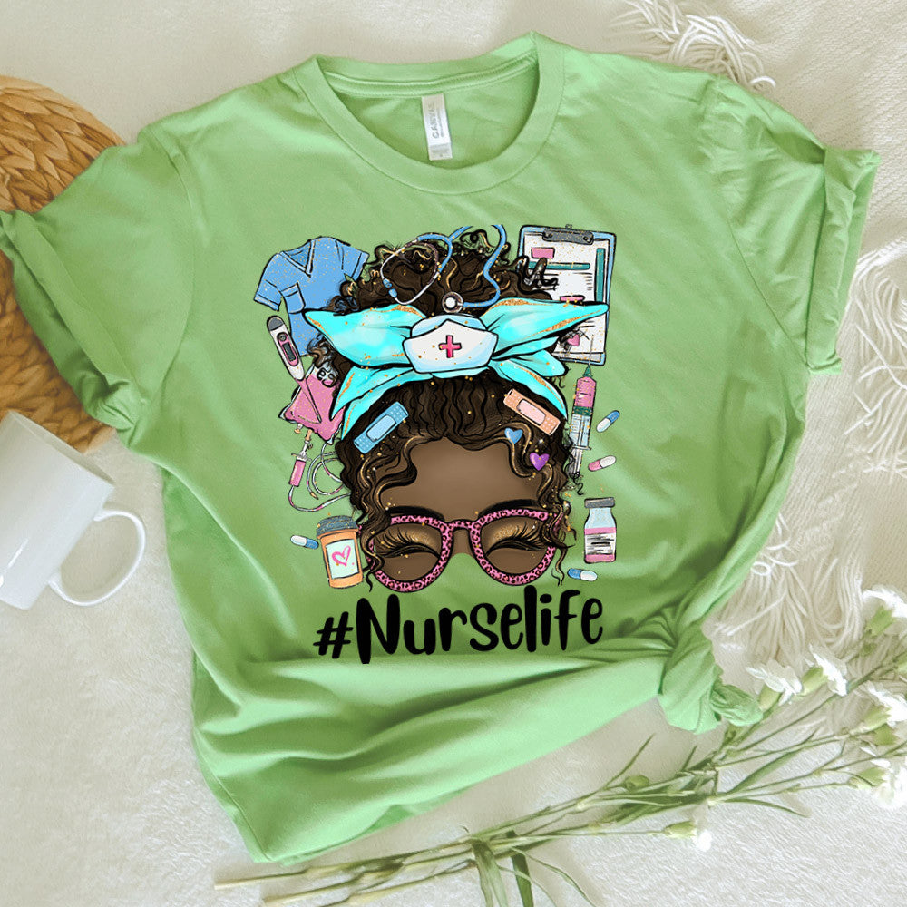 Nurse Graphic Tee Nurse Life Messy Bun Hair Black Girl