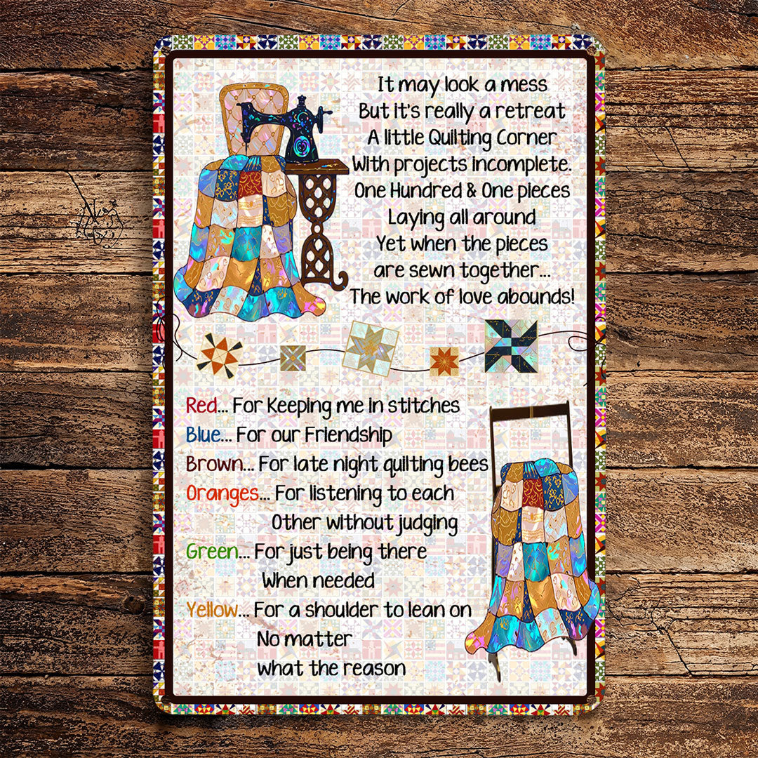 Sewing Lover 2D Metal Sign A Little Quilting Corner