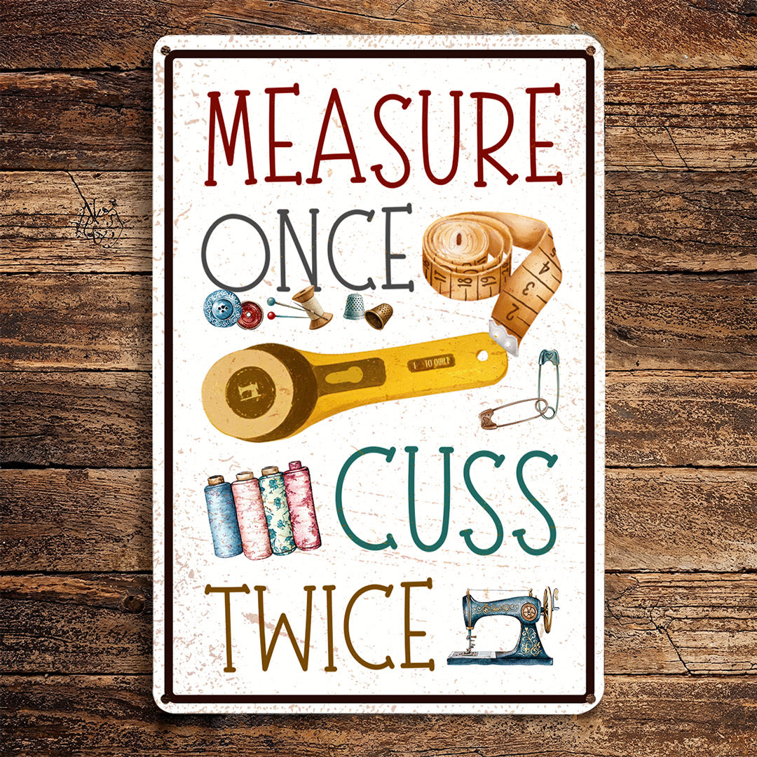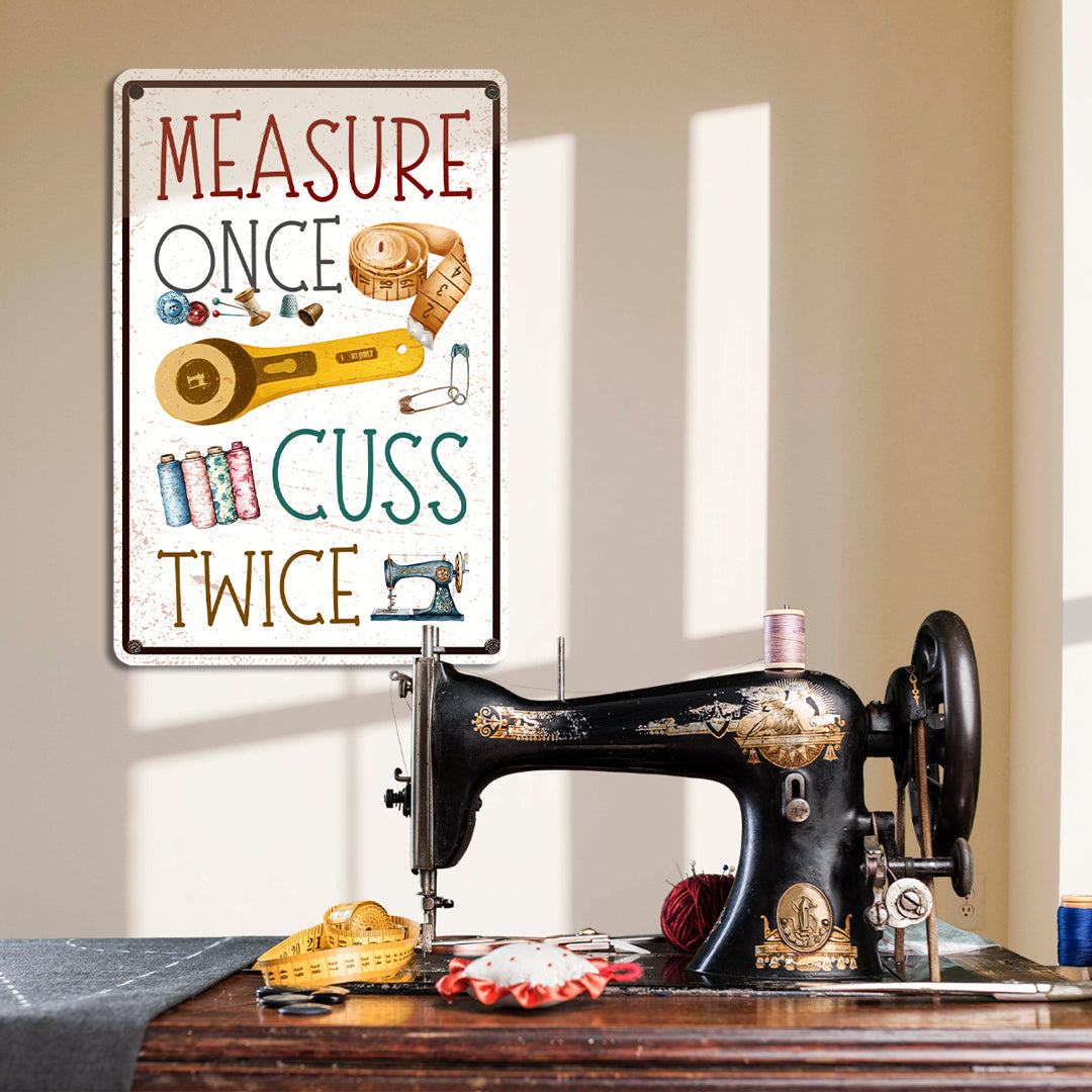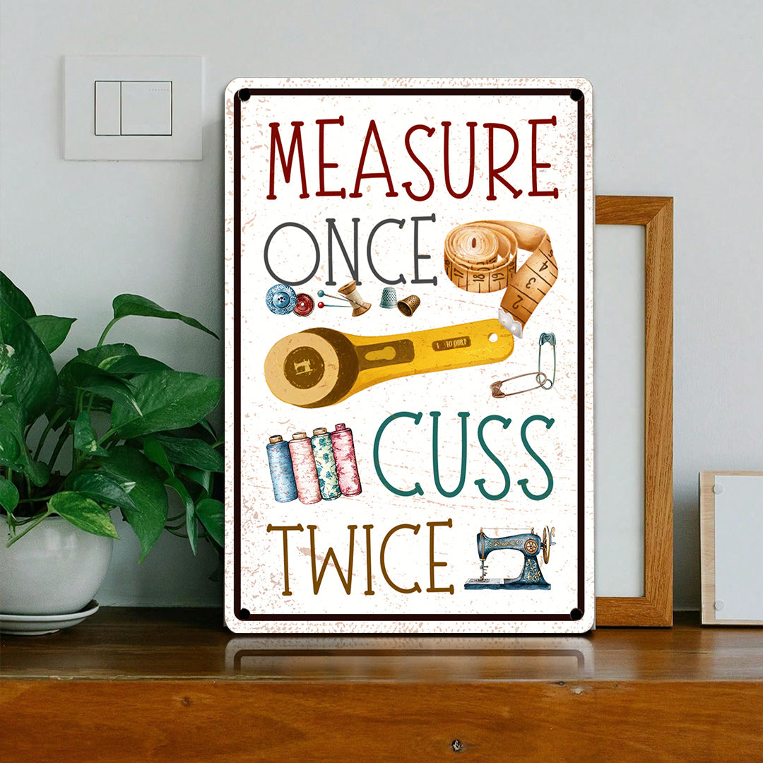 Sewing Lover 2D Metal Sign Measure Once Cuss Twice