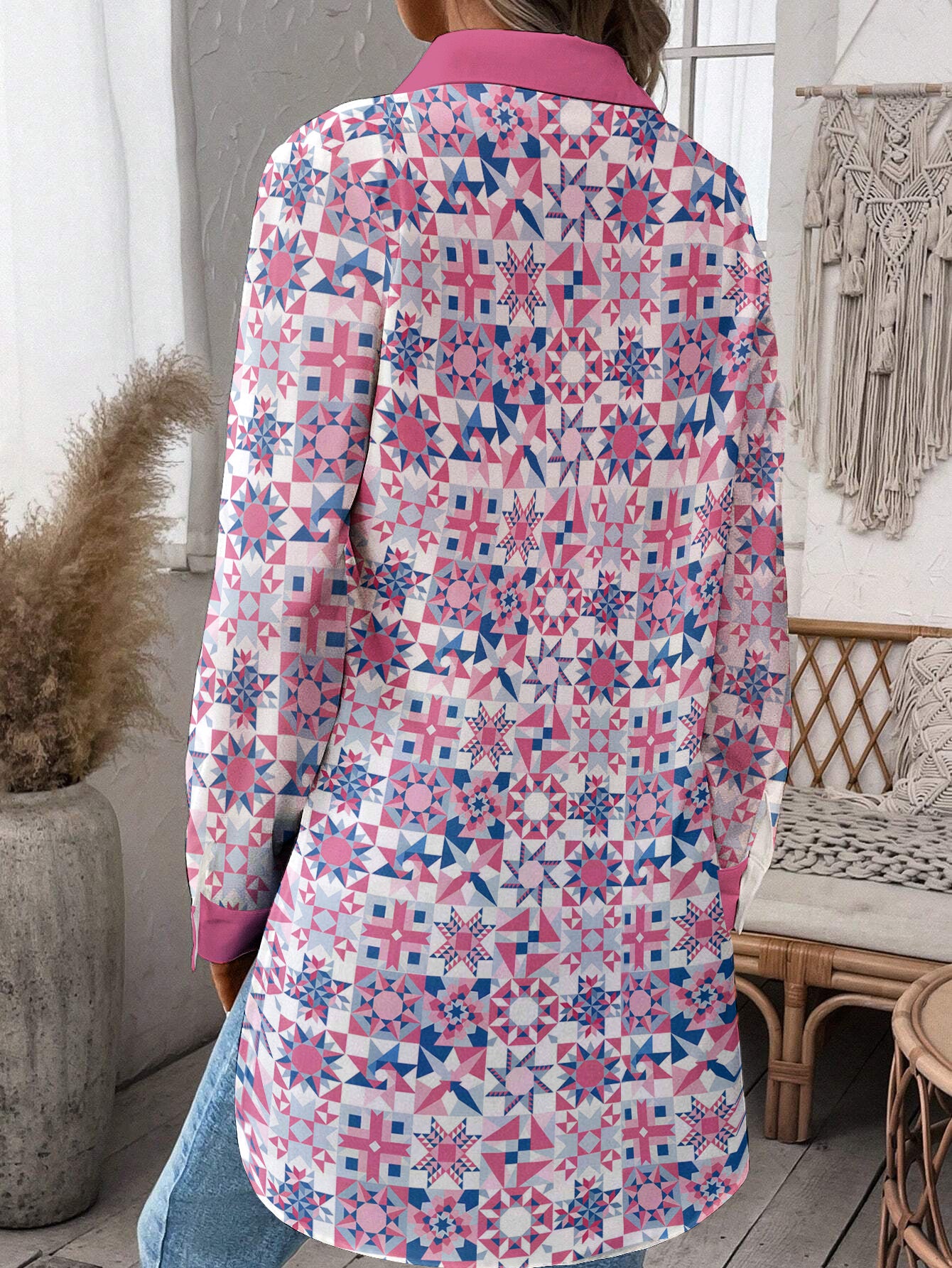 Sewing Lover Oversized Long Shirt Pink Quilt Blocks
