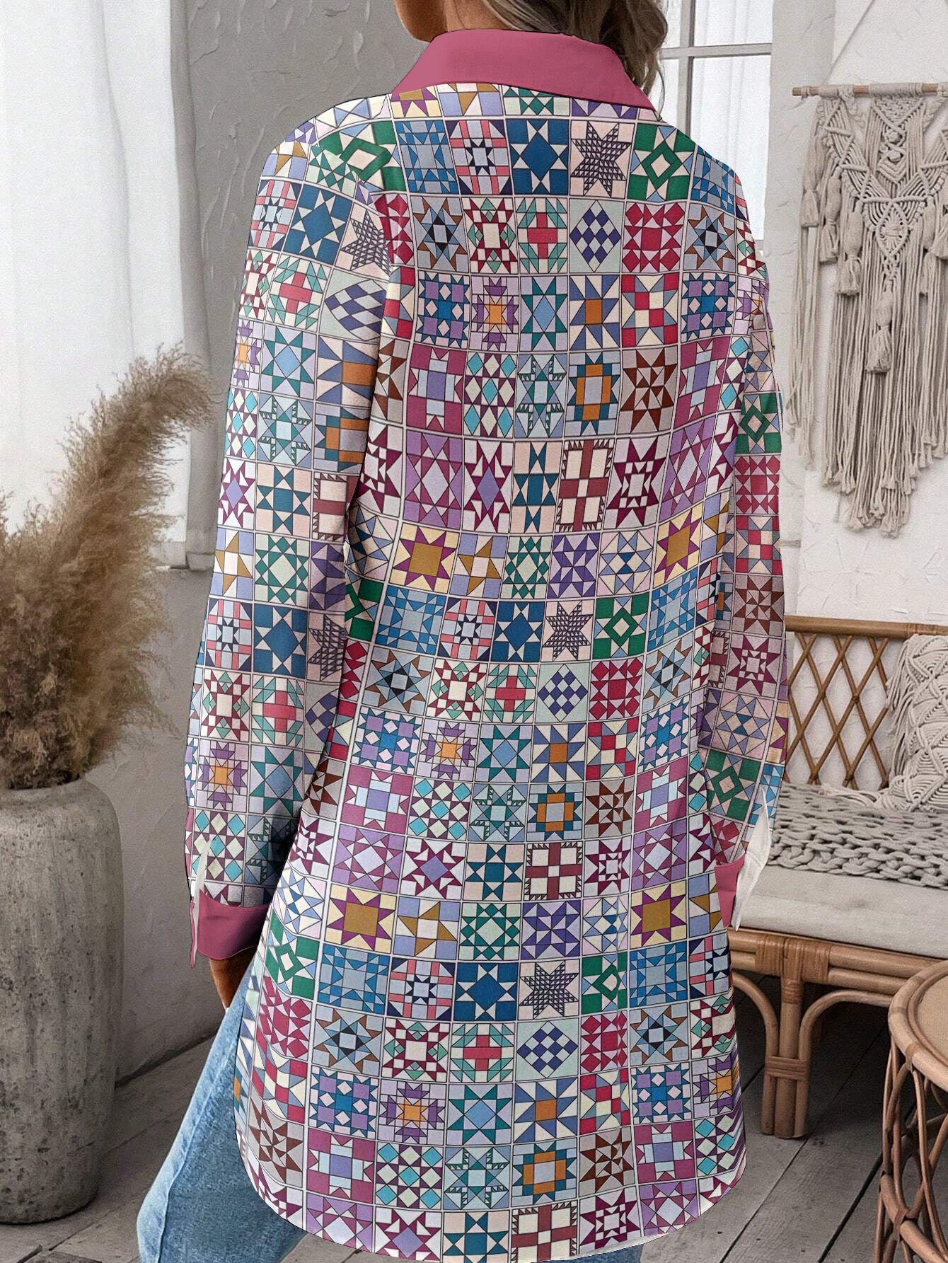 Sewing Lover Oversized Long Shirt Traditional Quilt Blocks