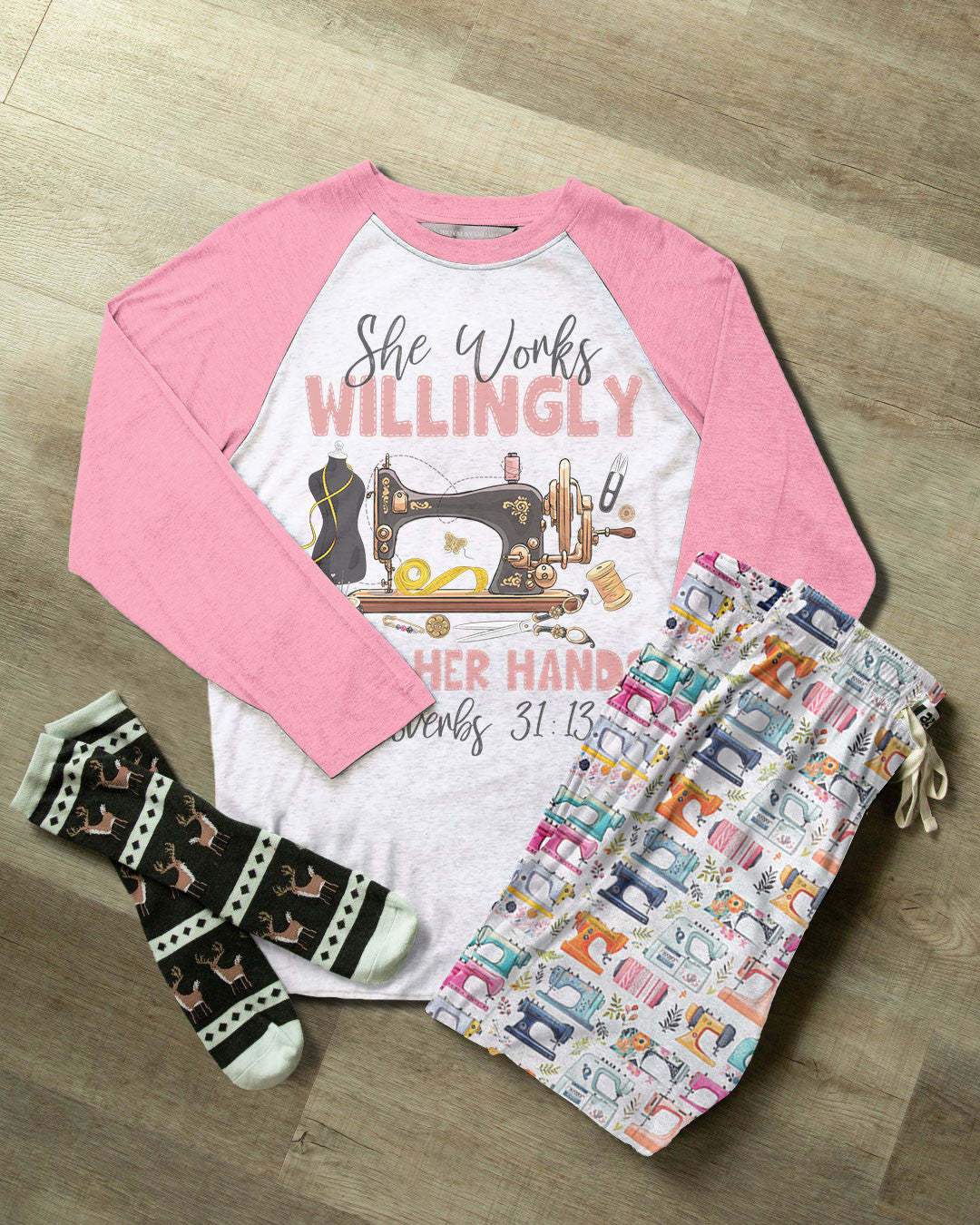 Sewing Lover Raglan Lounge Pajamas She Works Willingly With Her Hands