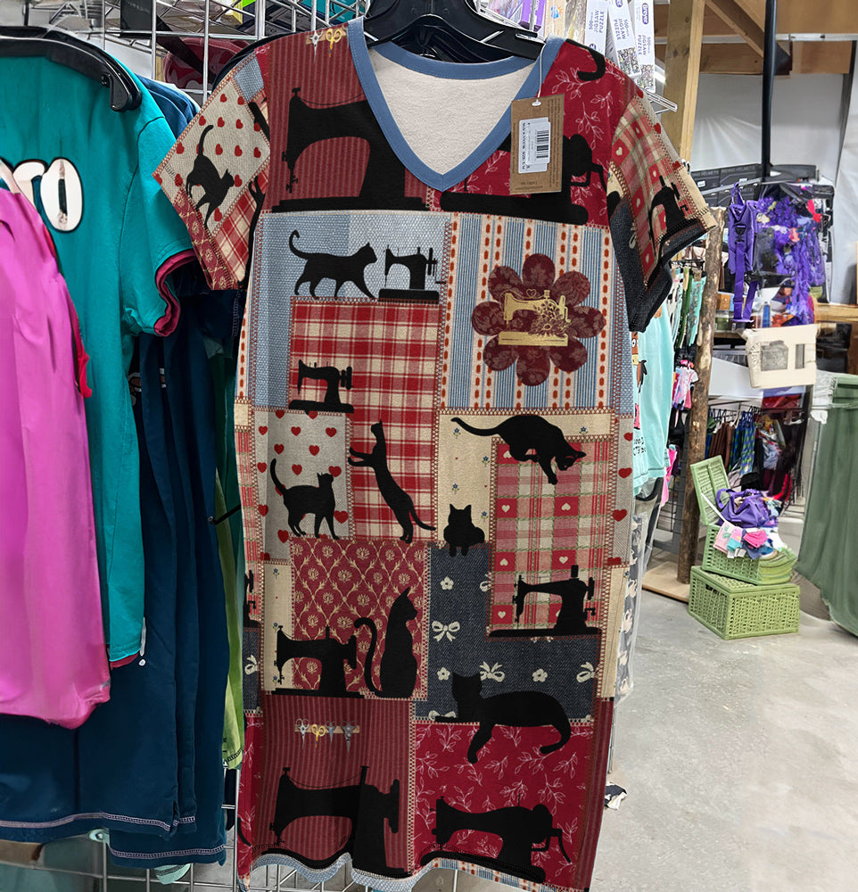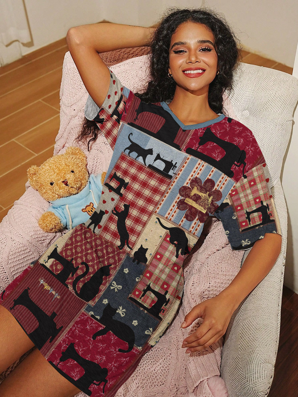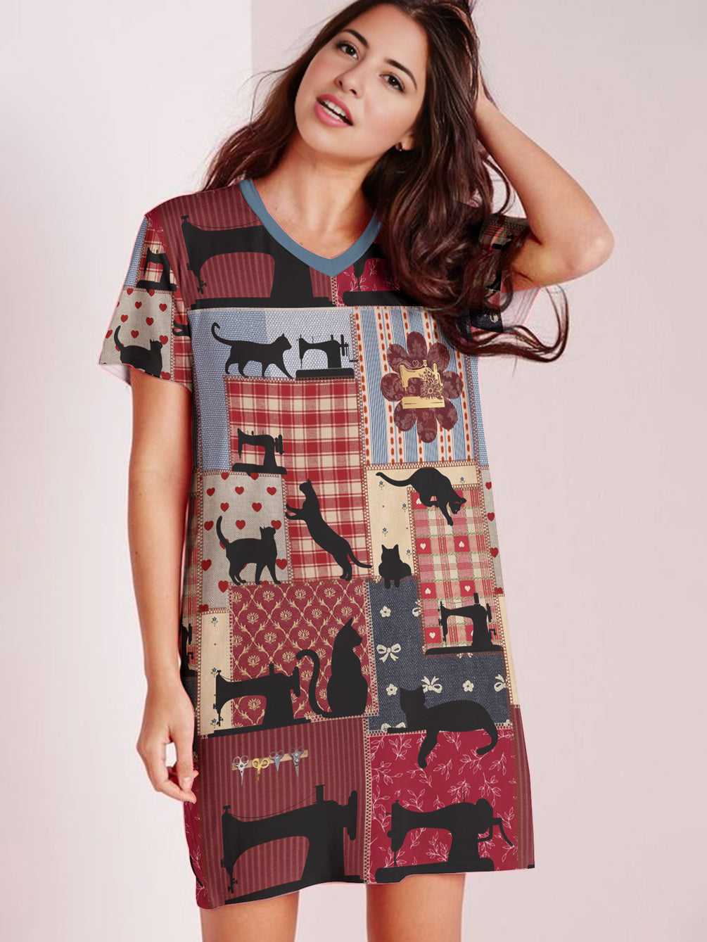 Sewing Lover V-neck Nightshirt Crafty Cat