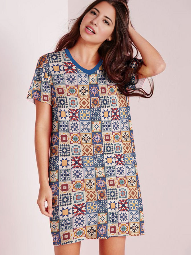 Sewing Lover V-neck Nightshirt Heritage Patchwork
