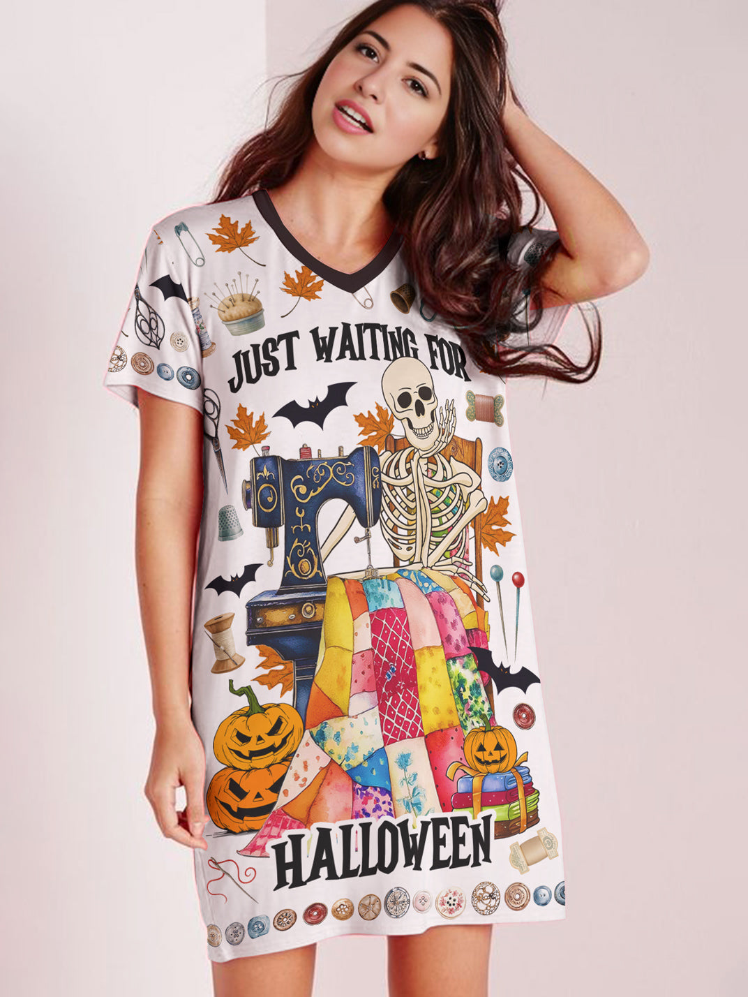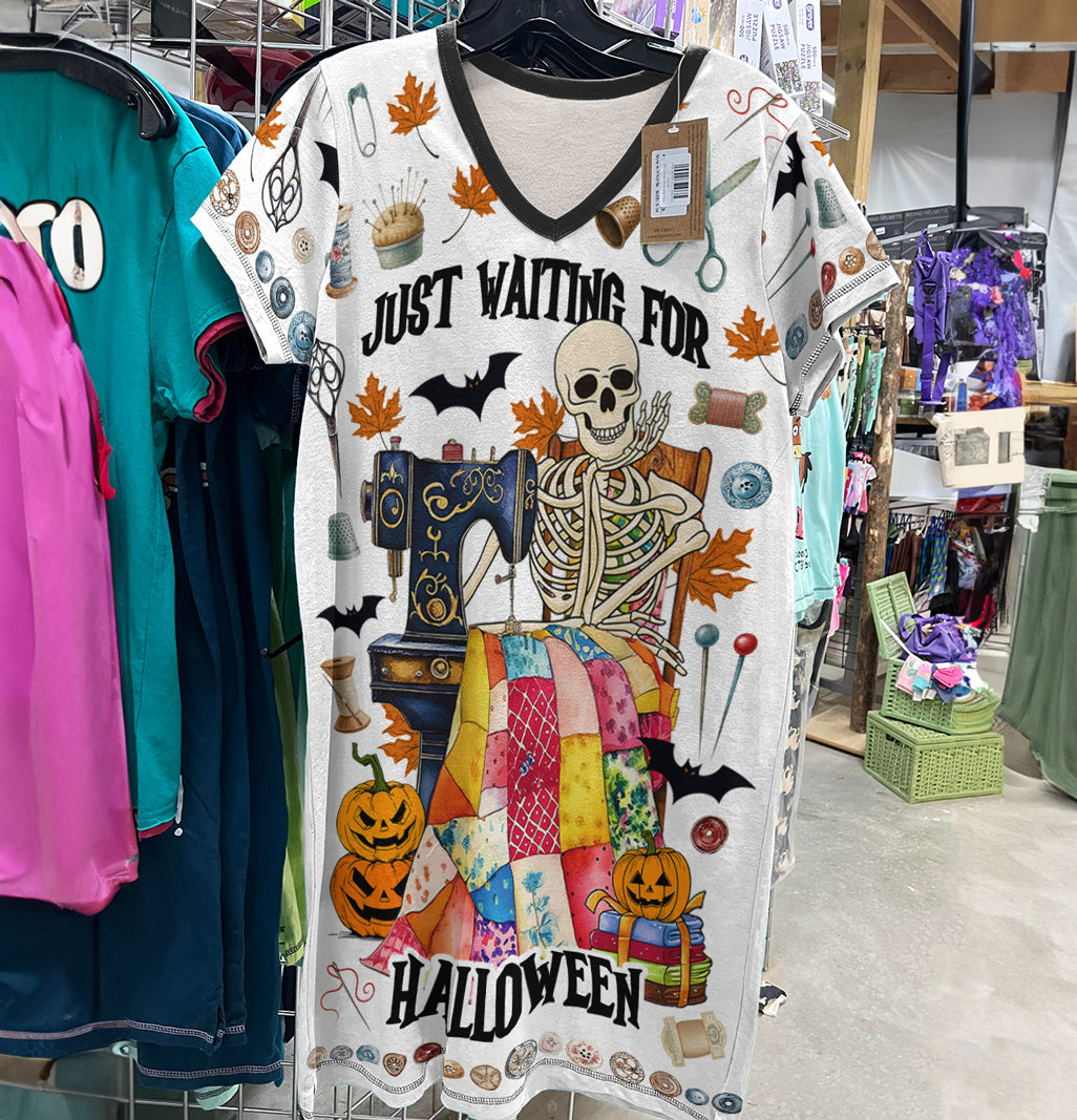 Sewing Lover V-neck Nightshirt Just Waiting For Halloween