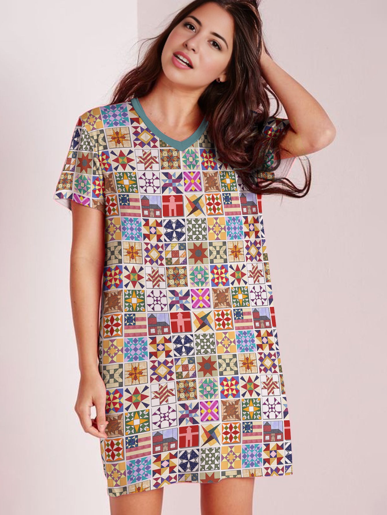 Sewing Lover V-neck Nightshirt Quilt Blocks