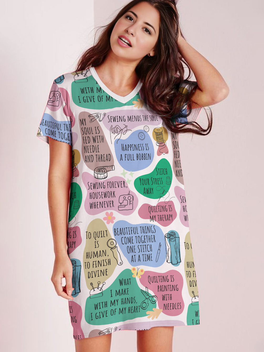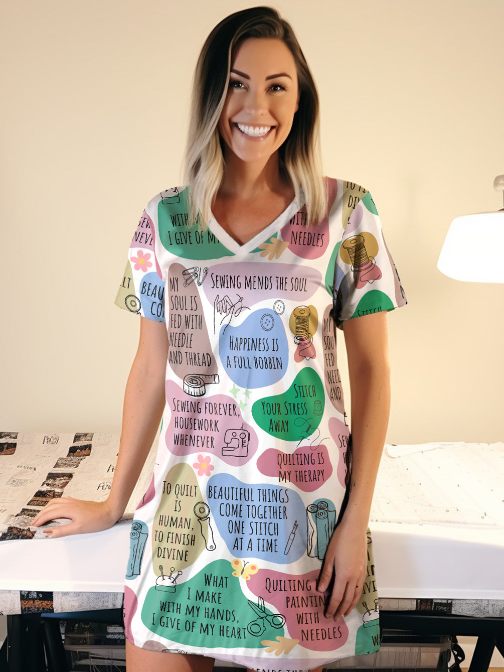 Sewing Lover V-neck Nightshirt Quilter Daily Affirmations