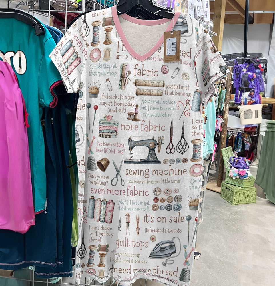 Sewing Lover V-neck Nightshirt Quilter's Obsession