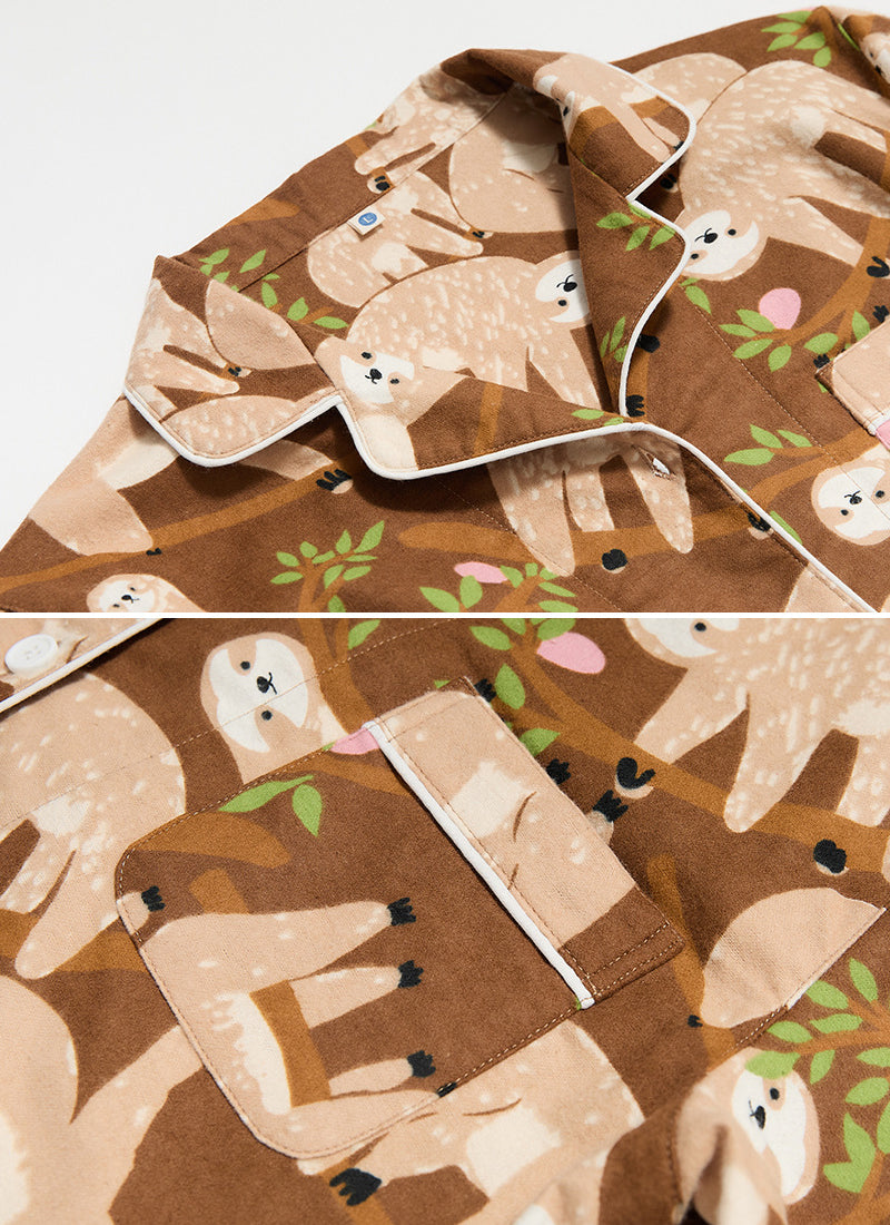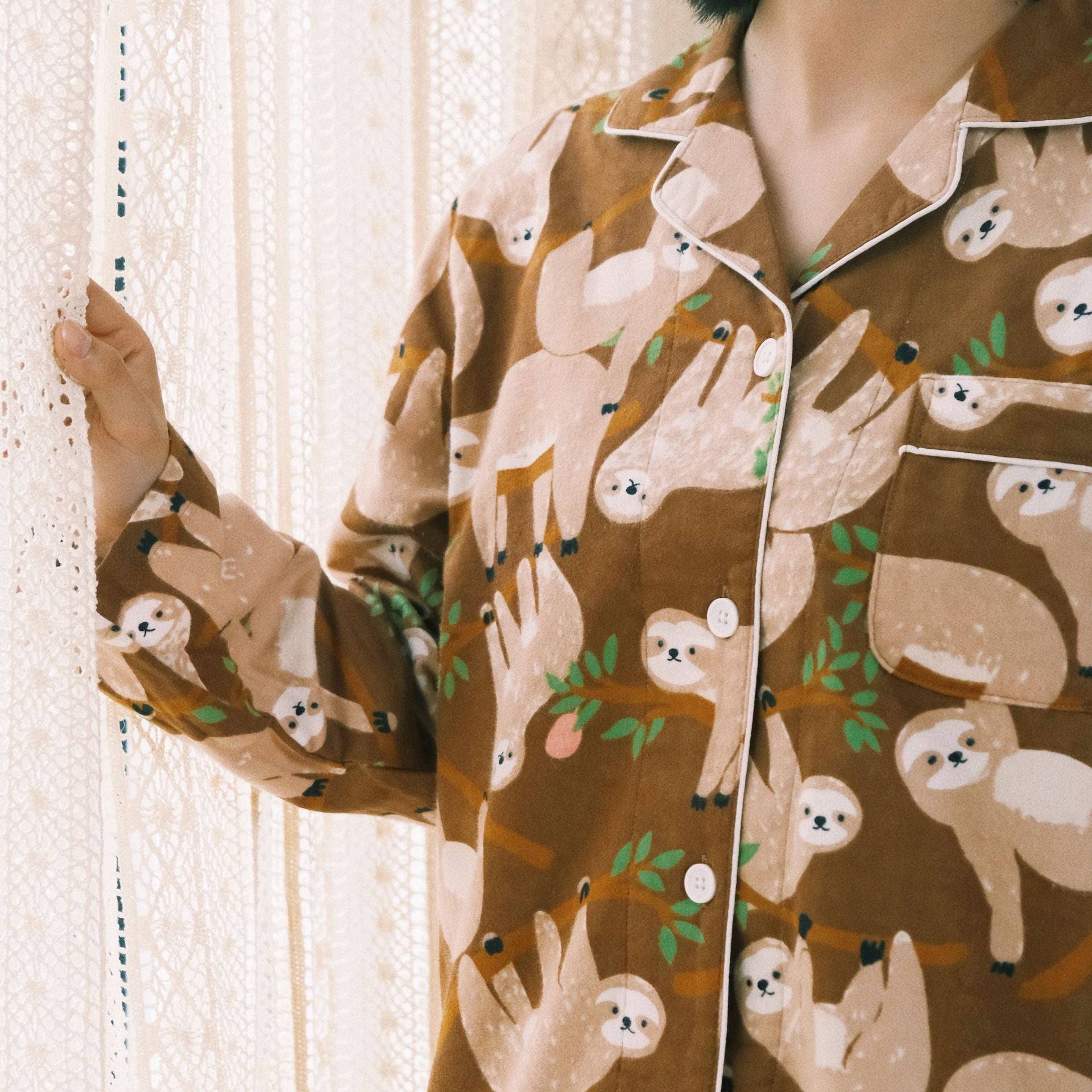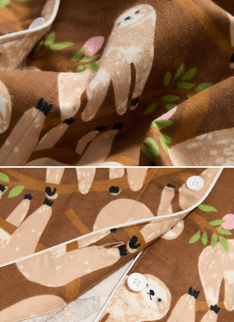 Slip into cozy bliss with our Sloth and Soft 100% Cotton Pajamas, crafted from premium 100% brushed cotton. With a medium-weight fabric (161-180g/m²), these pajamas offer the ideal balance between warmth and breathability, making them perfect for lounging, sleeping, or just relaxing at home. The delightful, vibrant print adds a fun pop of color, bringing personality and joy to your leisure time.