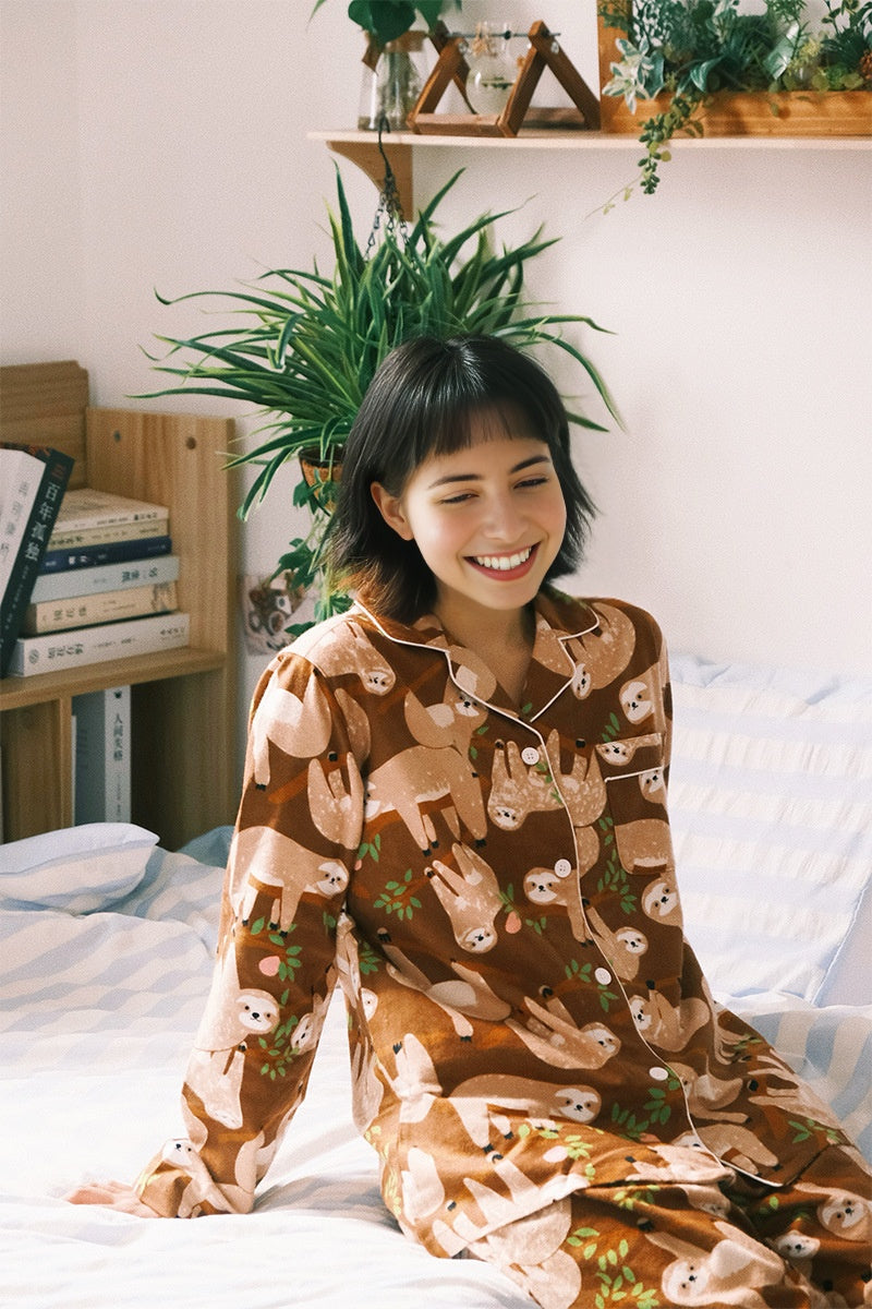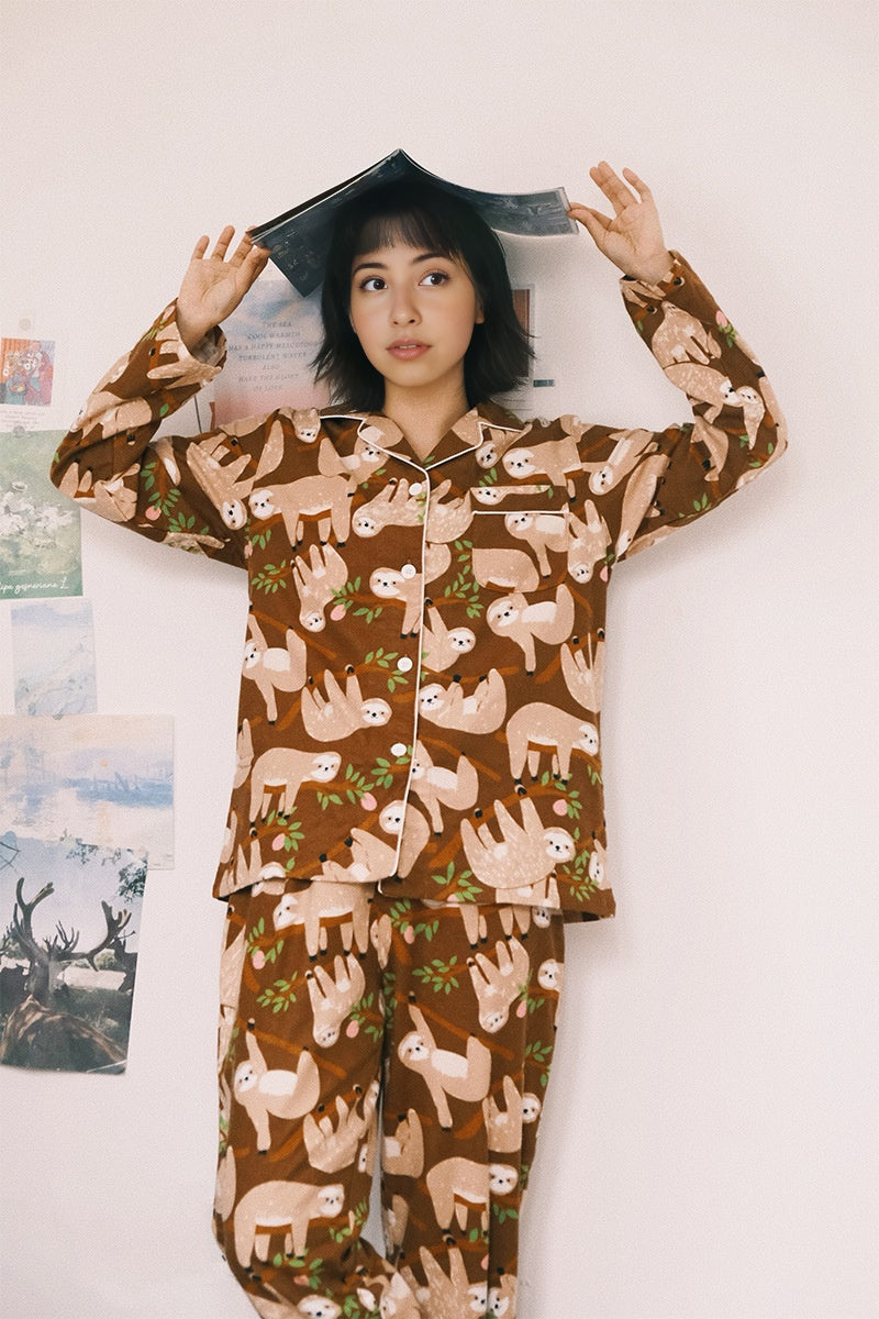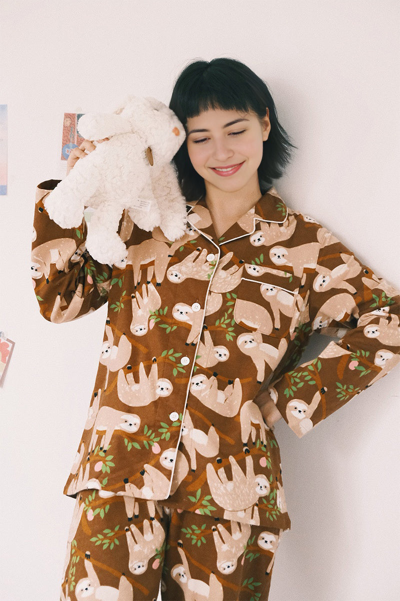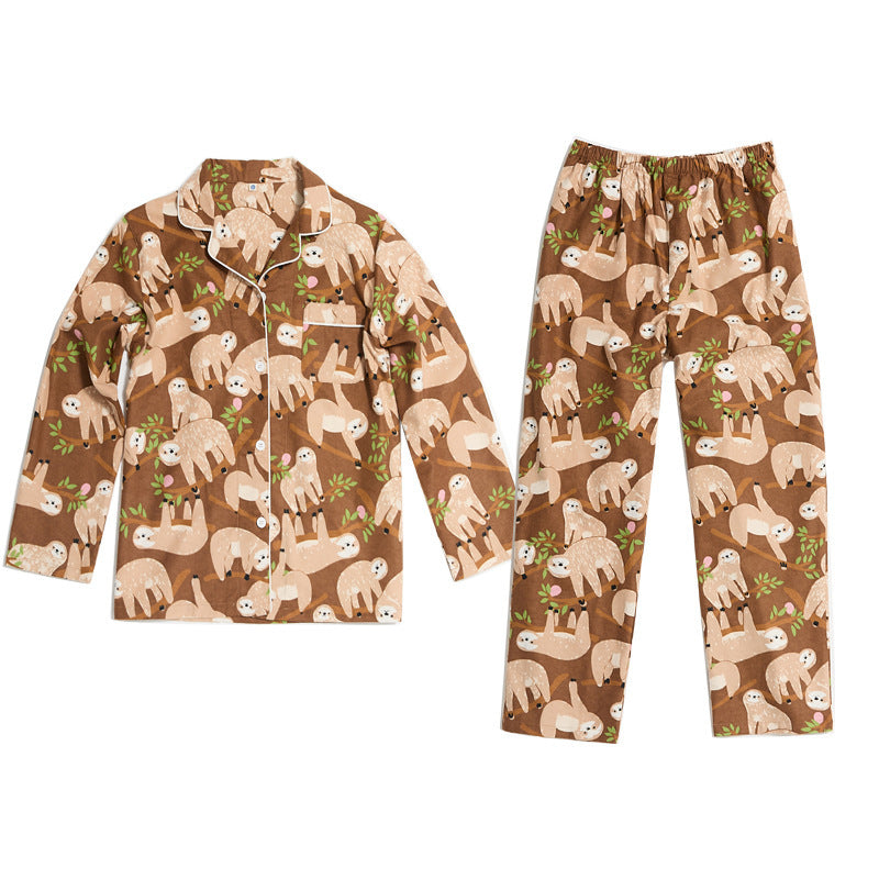 Slip into cozy bliss with our Sloth and Soft 100% Cotton Pajamas, crafted from premium 100% brushed cotton. With a medium-weight fabric (161-180g/m²), these pajamas offer the ideal balance between warmth and breathability, making them perfect for lounging, sleeping, or just relaxing at home. The delightful, vibrant print adds a fun pop of color, bringing personality and joy to your leisure time.
