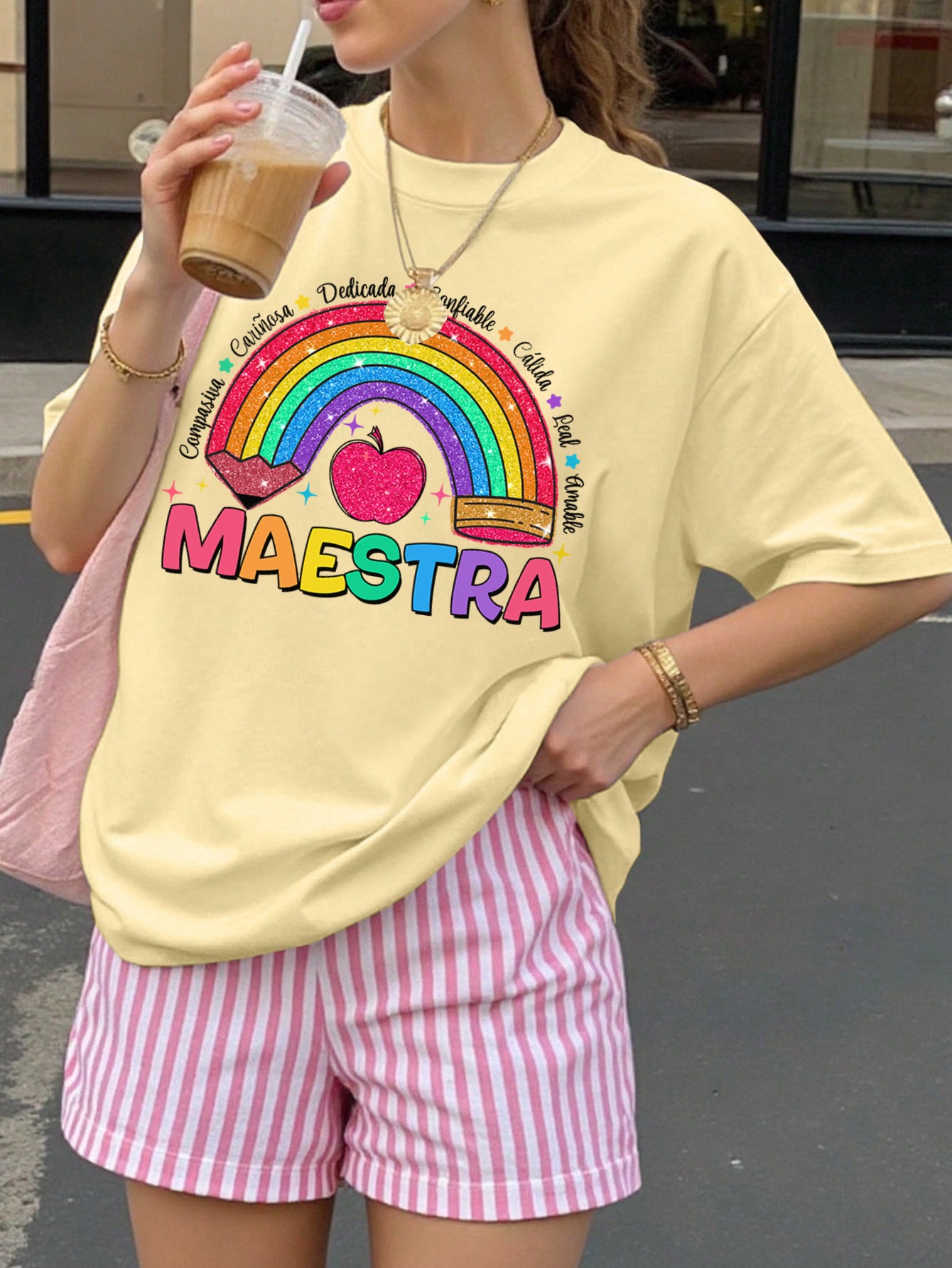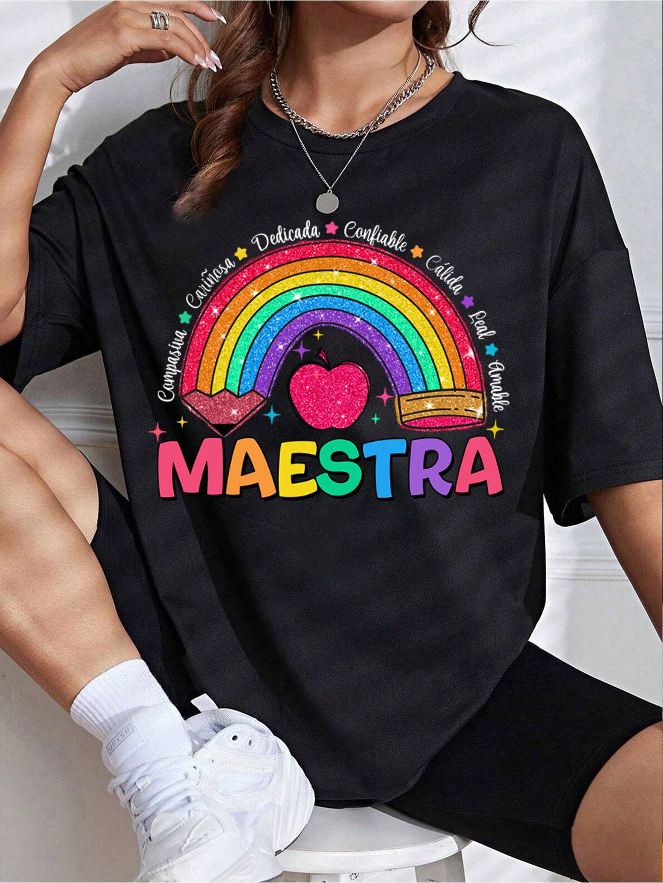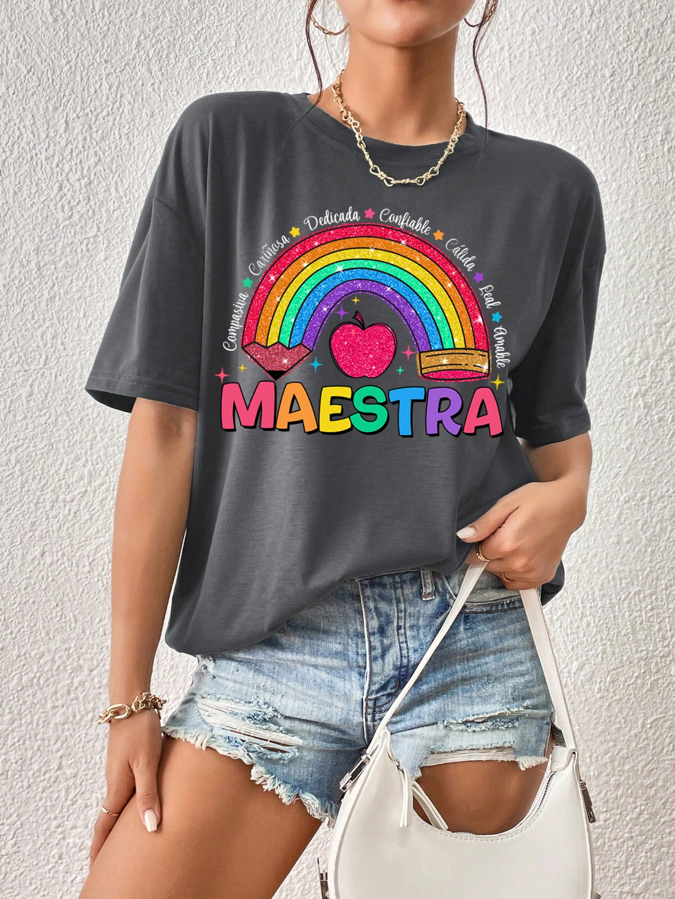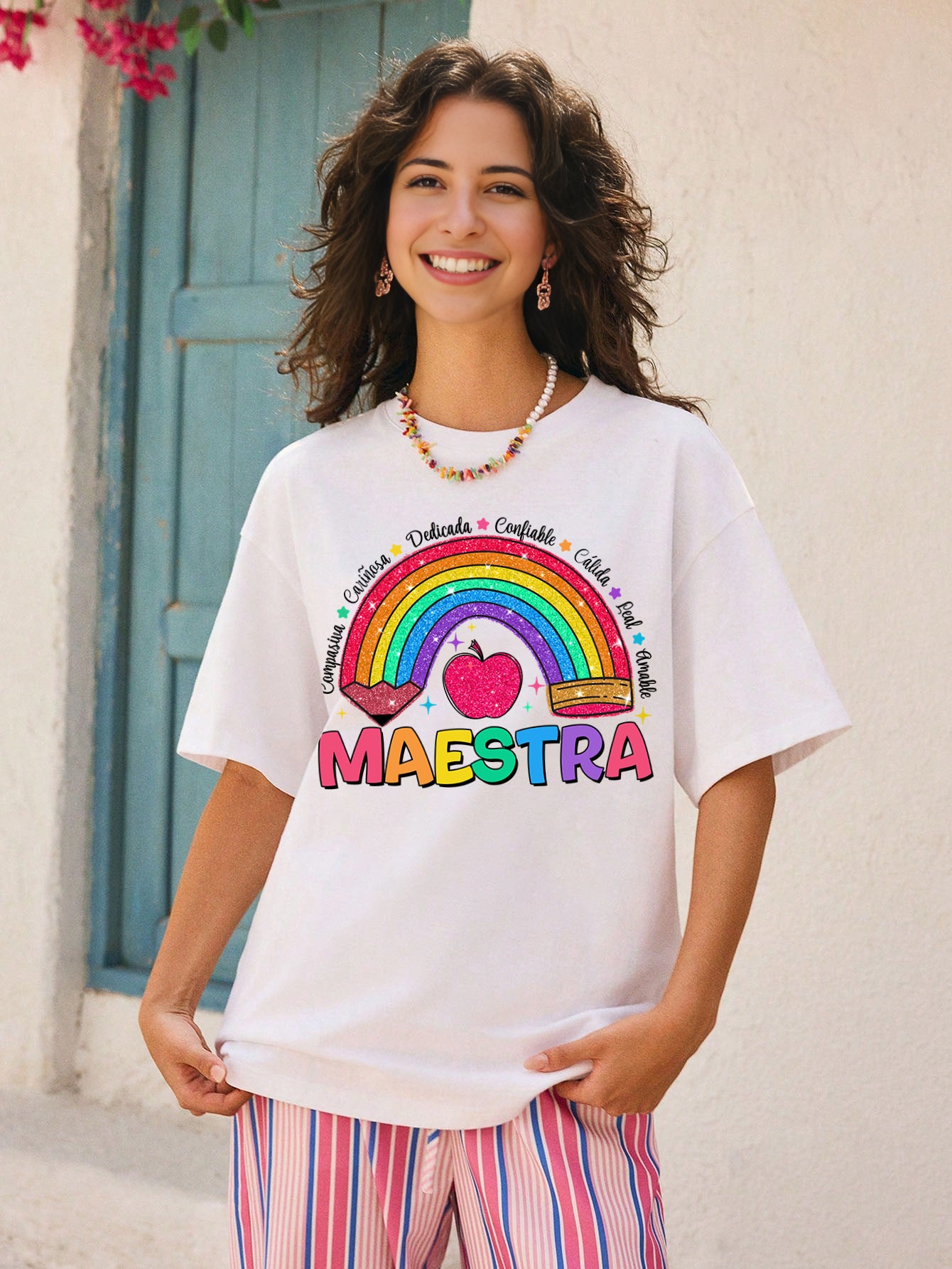 Spanish Teacher Graphic Tee Rainbow Maestra