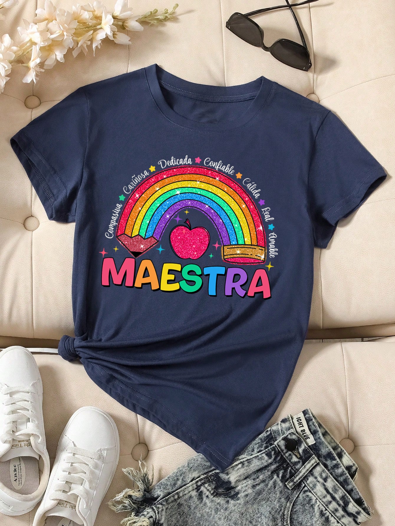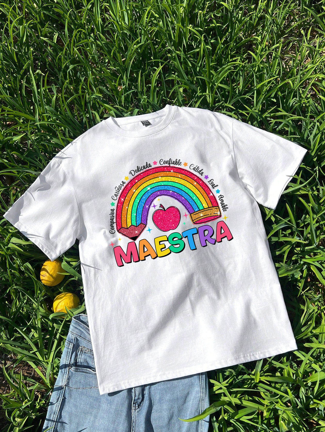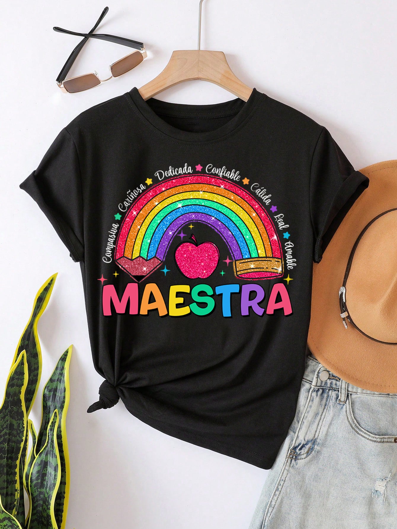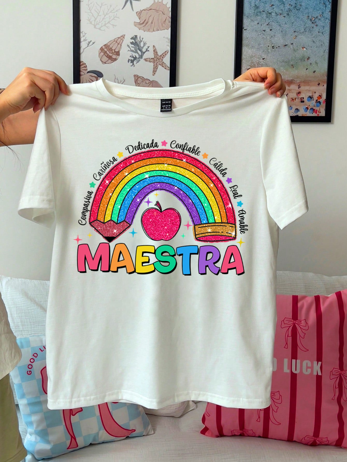 Spanish Teacher Graphic Tee Rainbow Maestra