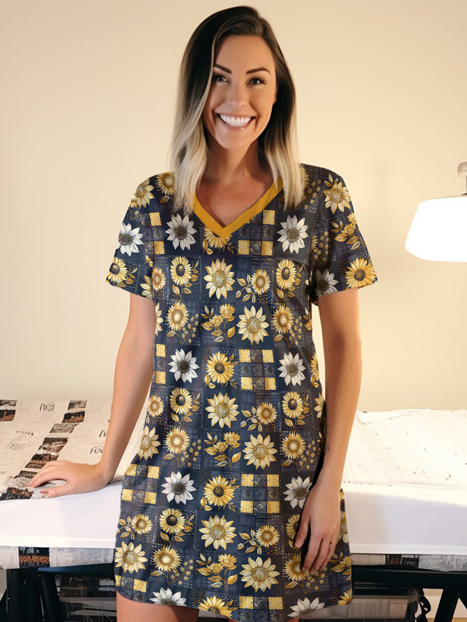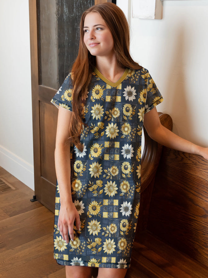 Sunflower V-neck Nightshirt Golden Petals